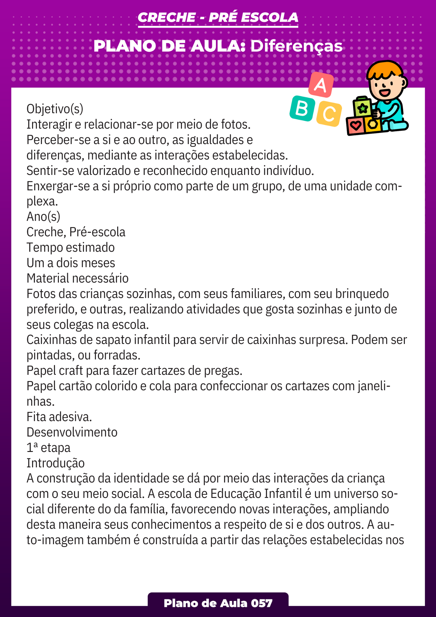 ✅ Planos de aula organizados por faixa etária (0 a 5 anos)