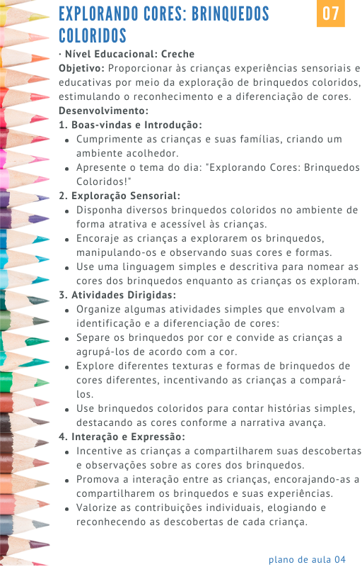 Este combo pedagógico reúne mais de 500 planos de aula e 500 atividades prontas para Berçário, Maternal e Pré-escola — todos alinhados à BNCC e elaborados para facilitar a rotina do educador e enriquecer o aprendizado das crianças.