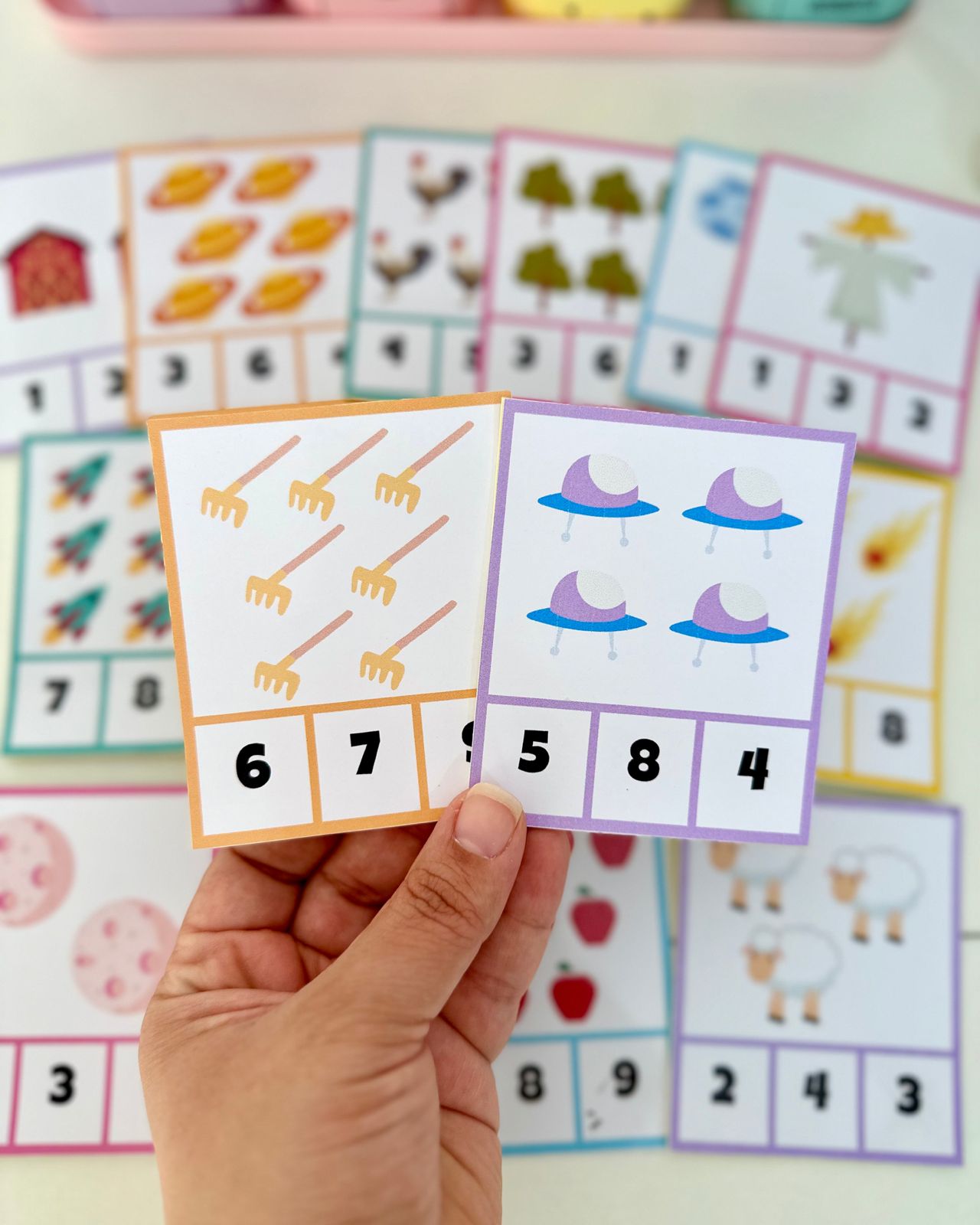 Dica de Montagem: Imprima em papel fotográfico (gramatura 180) e aplique papel contact para criar fichas reutilizáveis que permitem escrever e apagar com caneta para quadro branco.