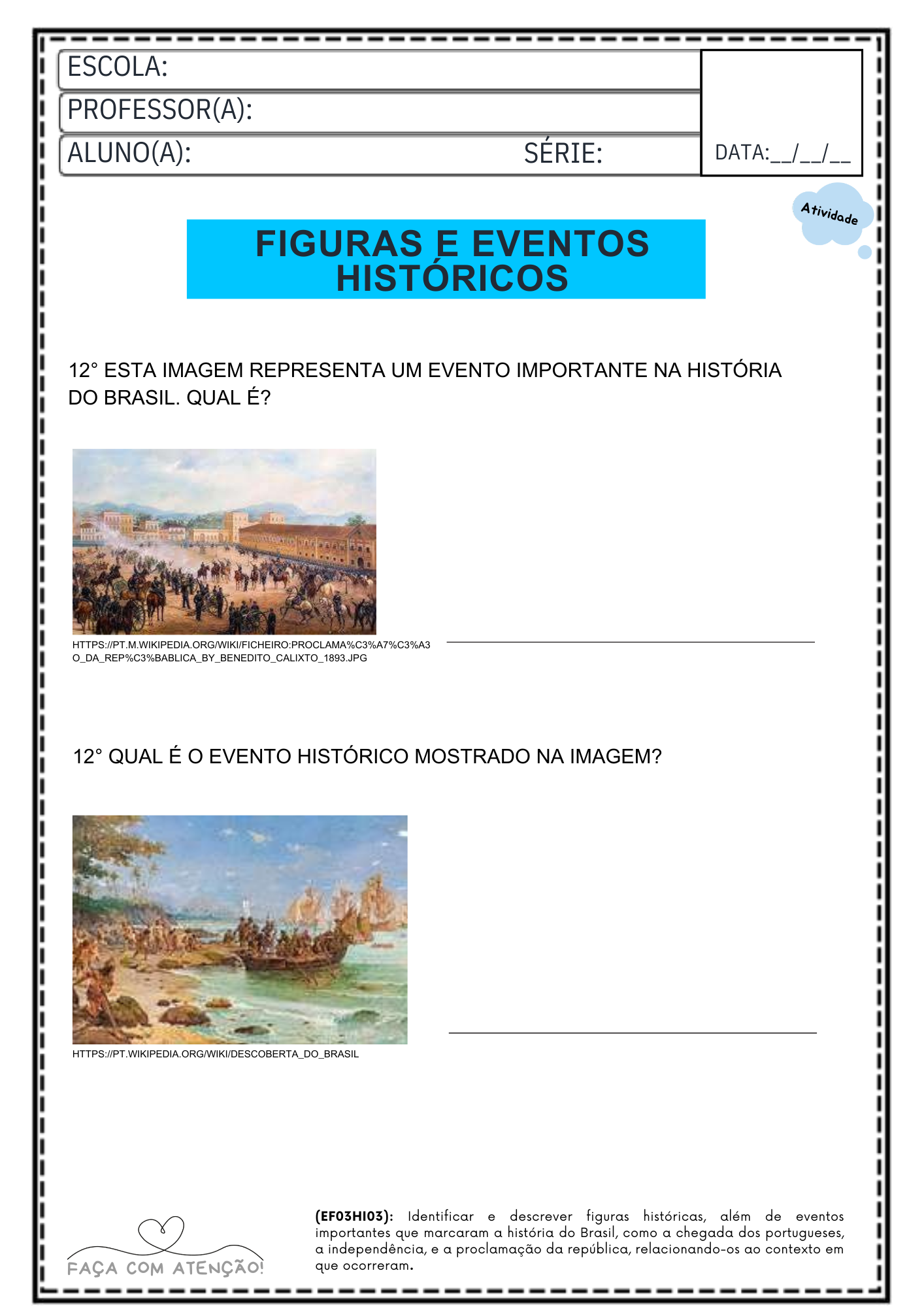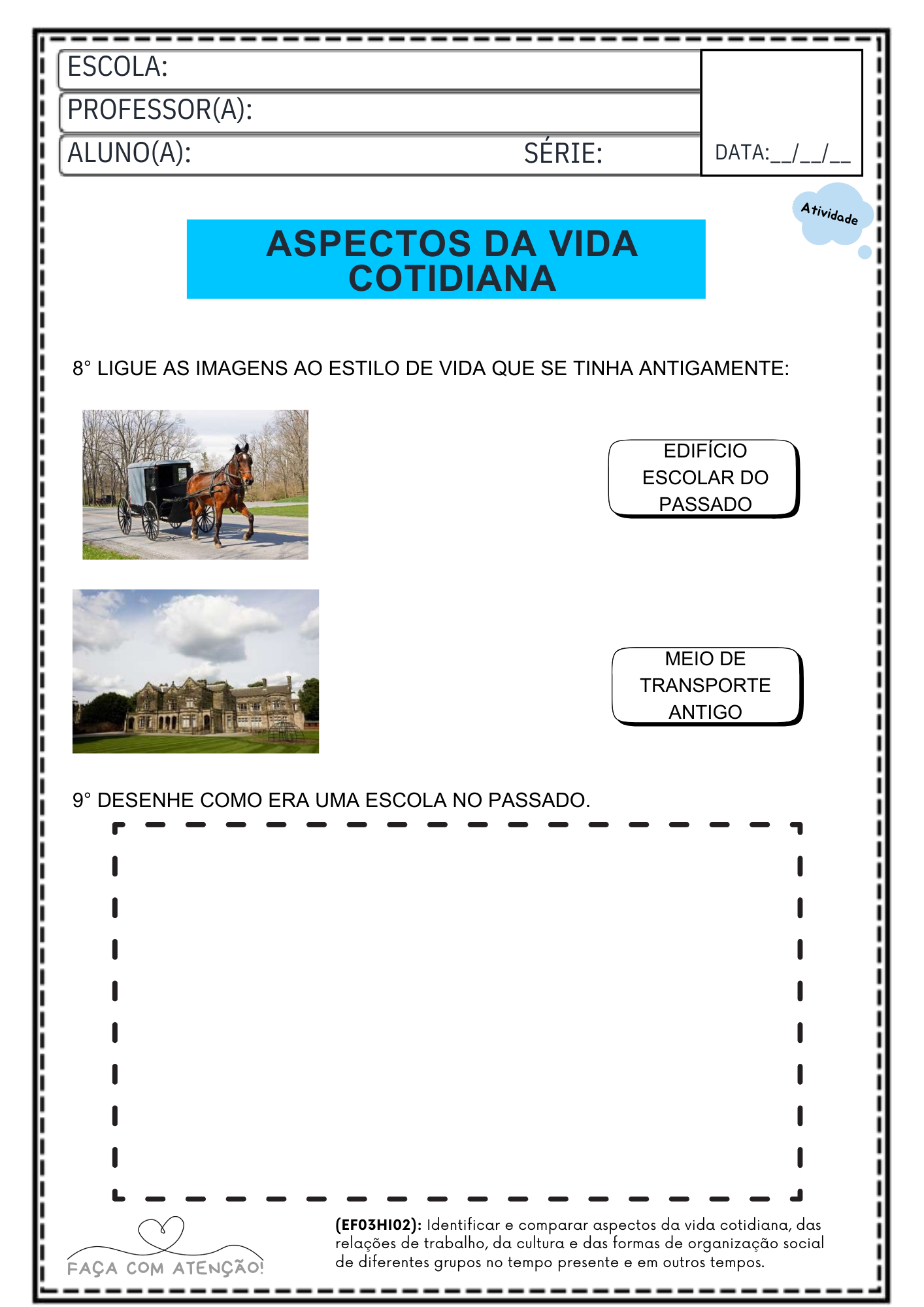 Atividades de história 3º ano ensino fundamental para imprimir, alinhadas à BNCC. Apostila com 40 páginas e gabarito, ideal para trabalhar cultura, sociedade, formação do Brasil e convivência.