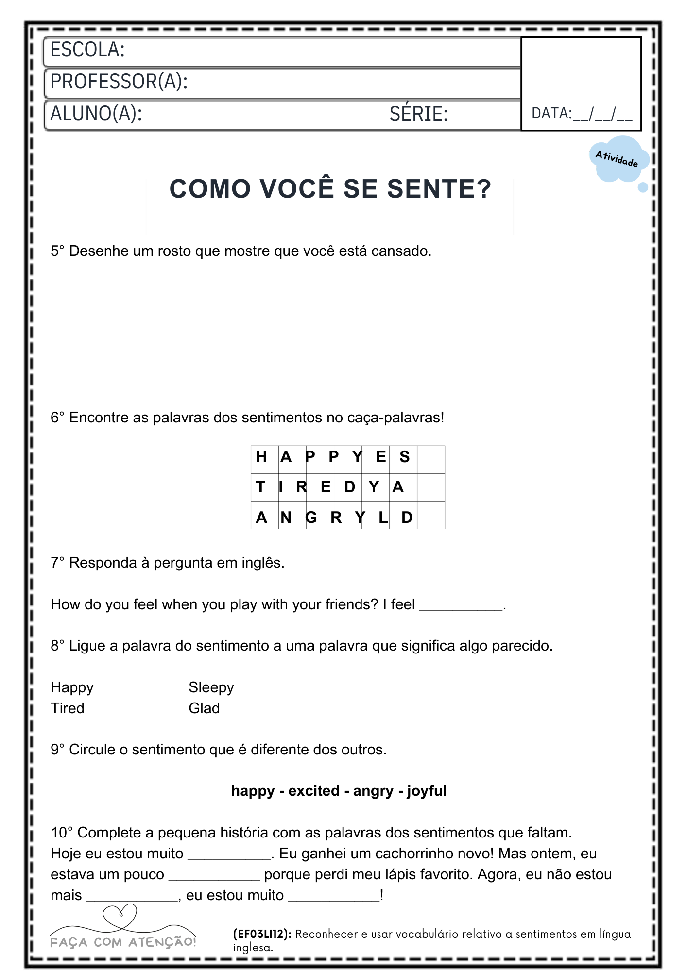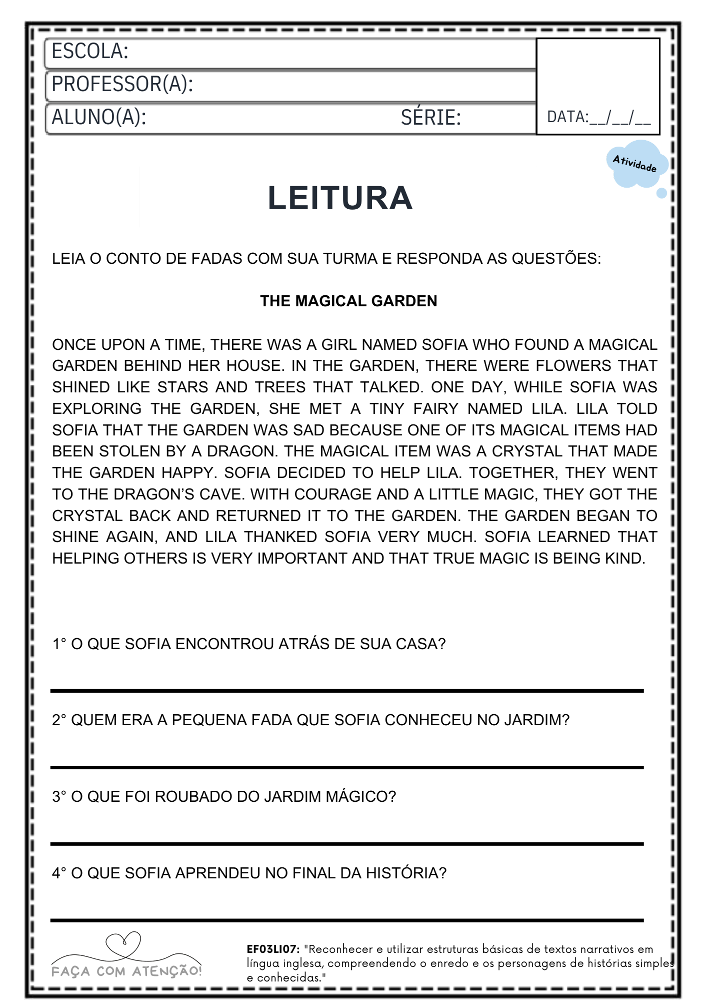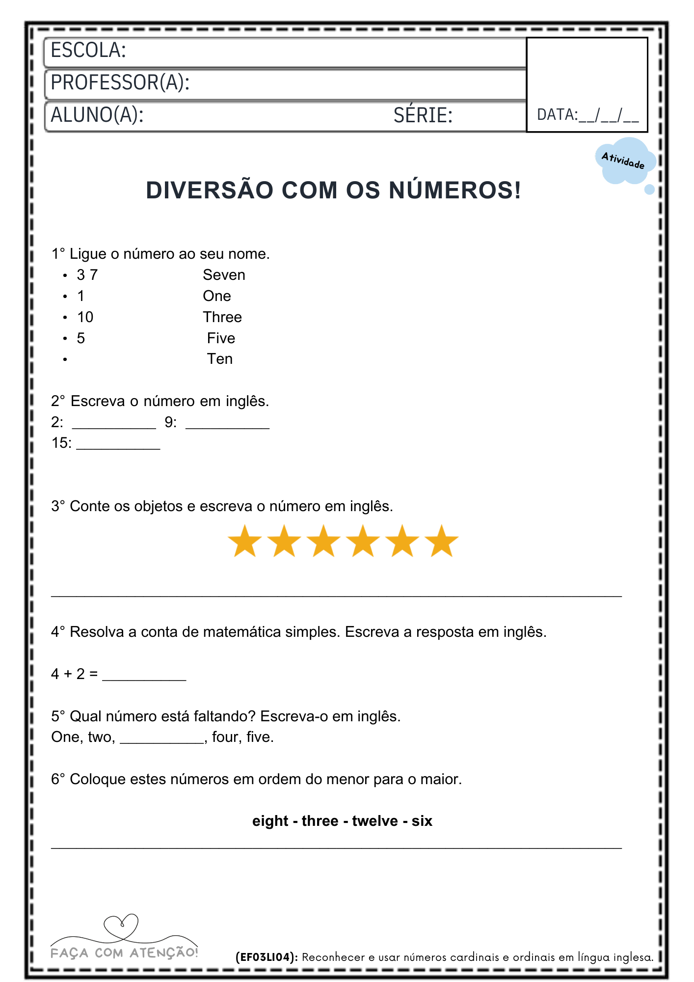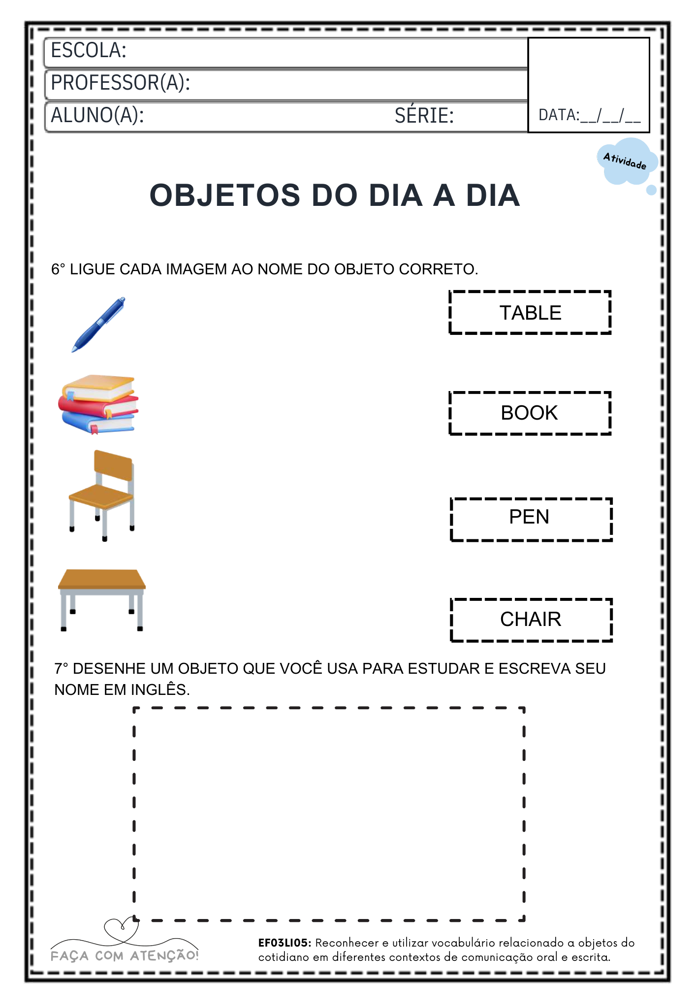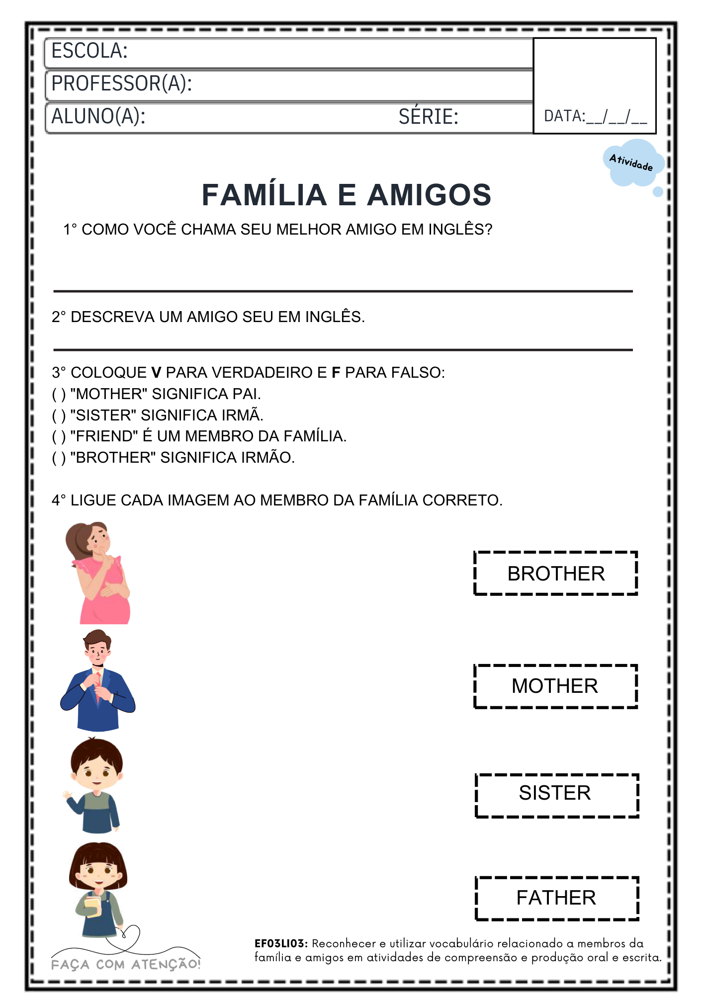 Ideal para professores que precisam de atividades prontas para trabalhar inglês básico em sala de aula ou reforço escolar.