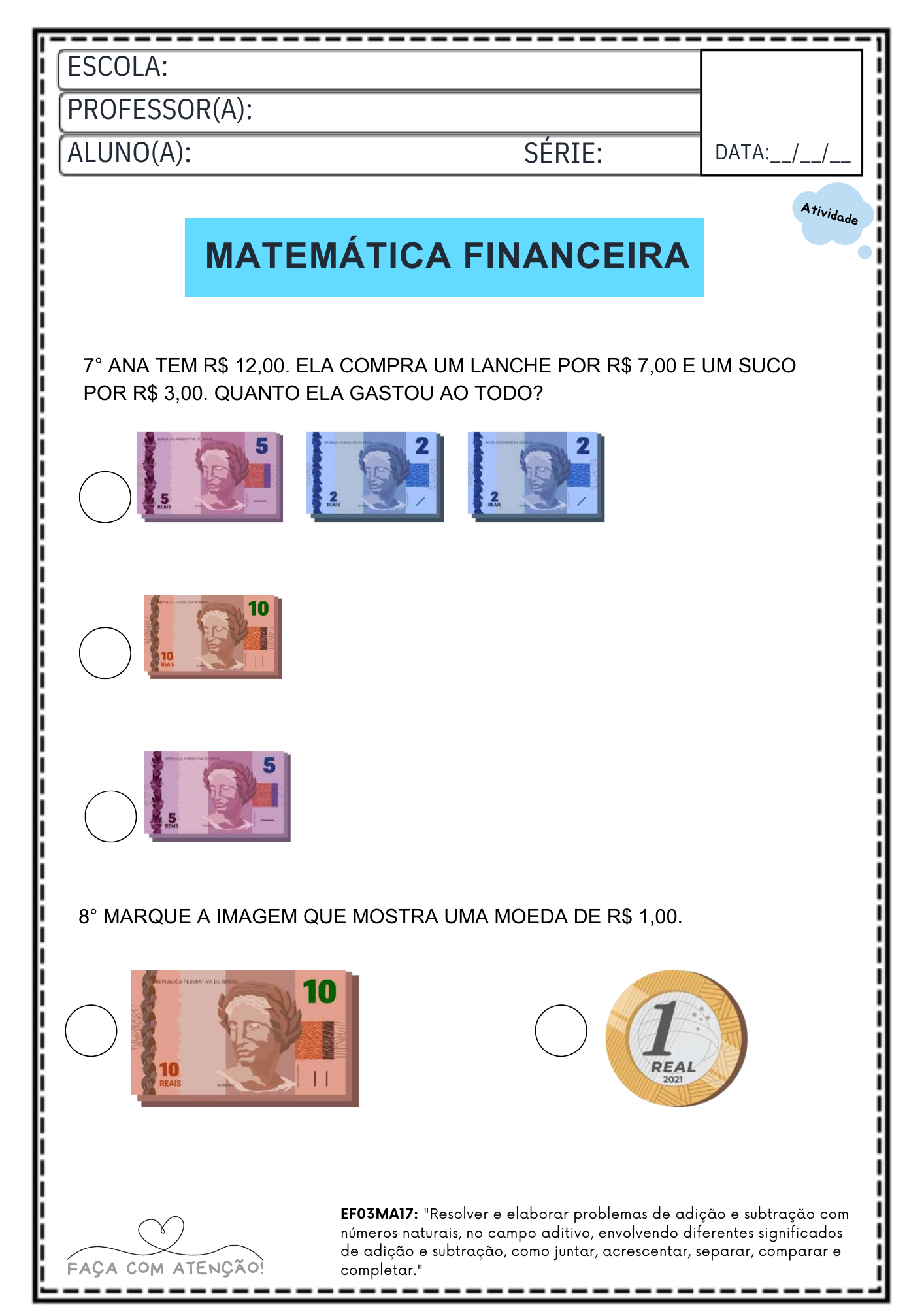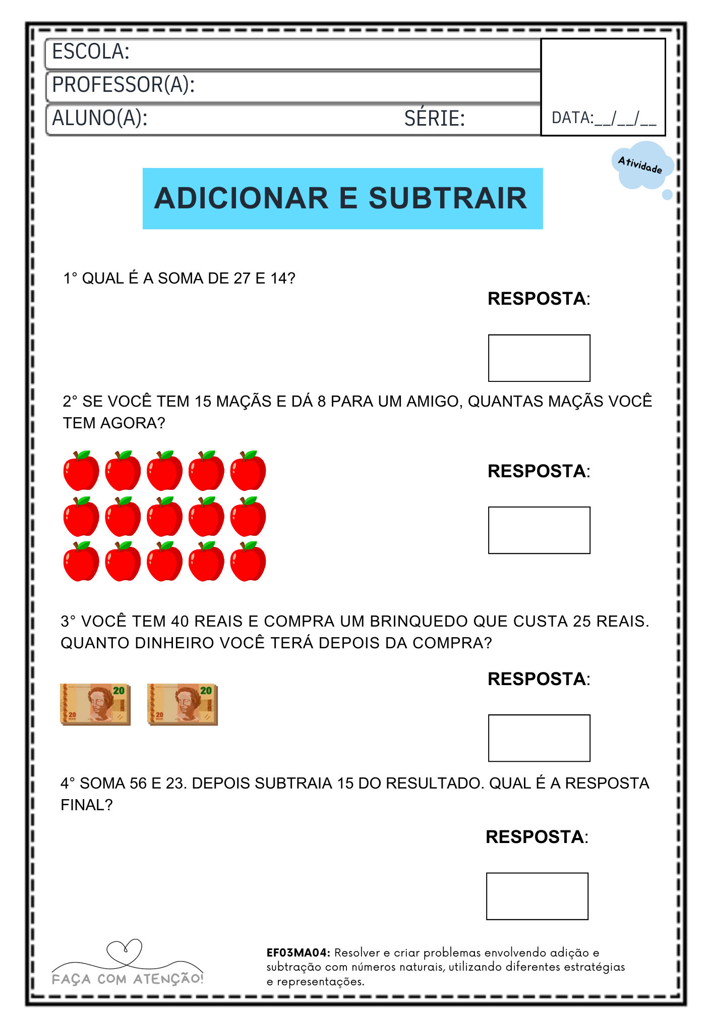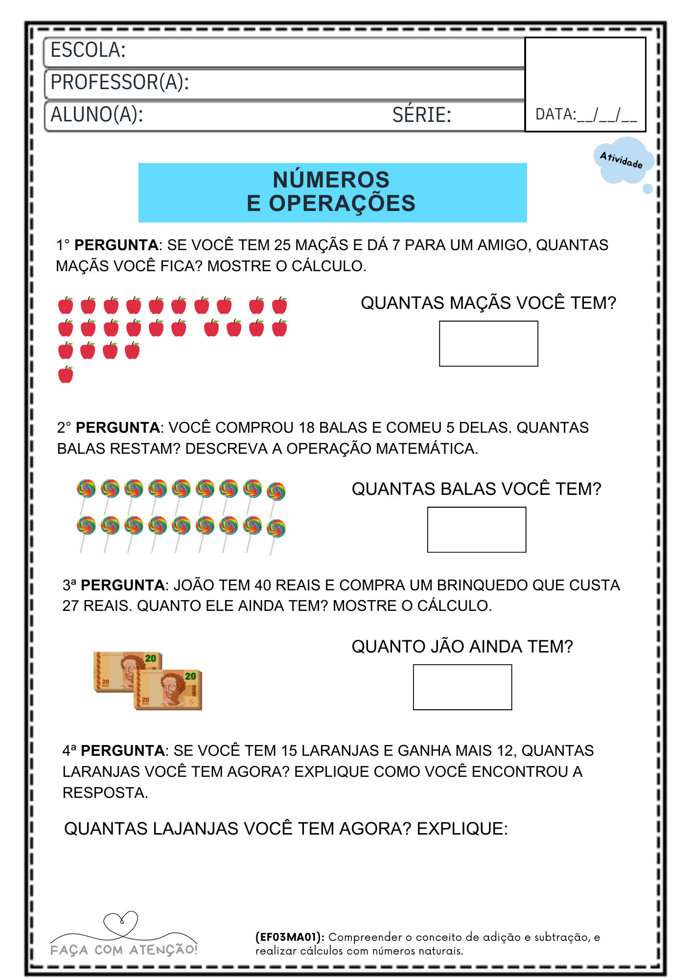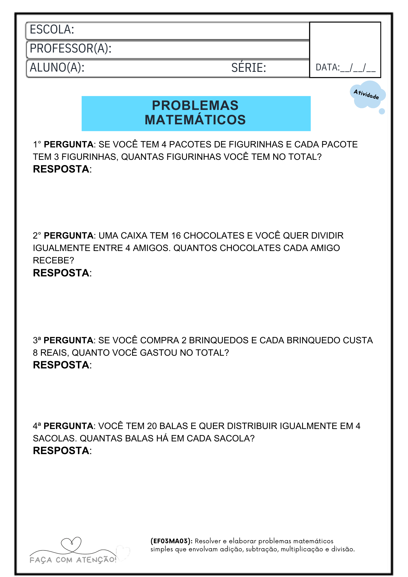 Apostila de Matemática 3º Ano Ensino Fundamental alinhado á BNCC (42 Páginas + Gabarito)