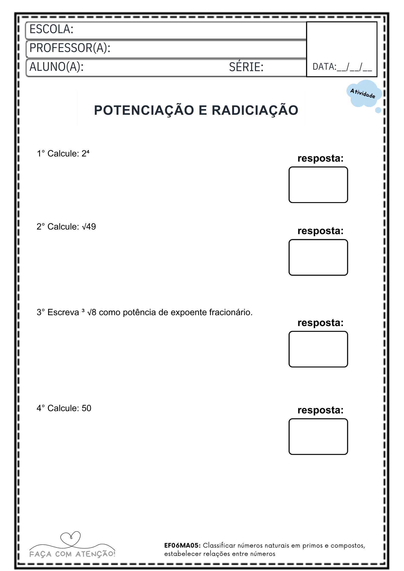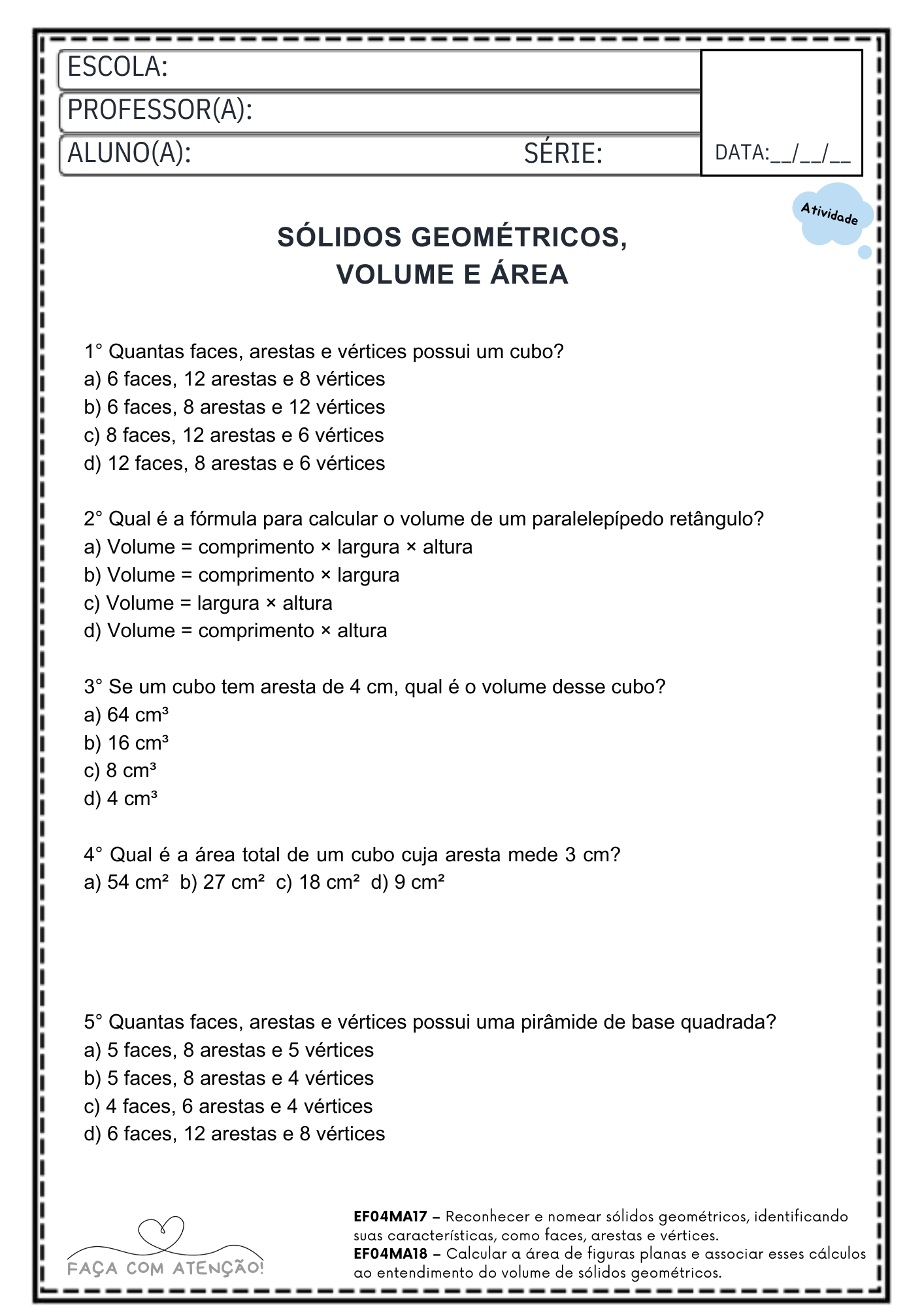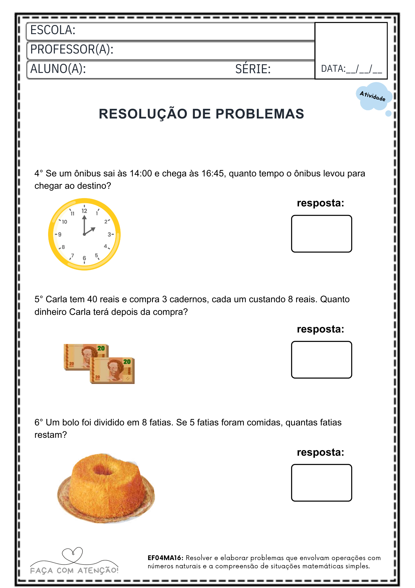 Apostila de Matemática 4º Ano Ensino Fundamental alinhada á BNCC (47 Páginas + Gabarito)