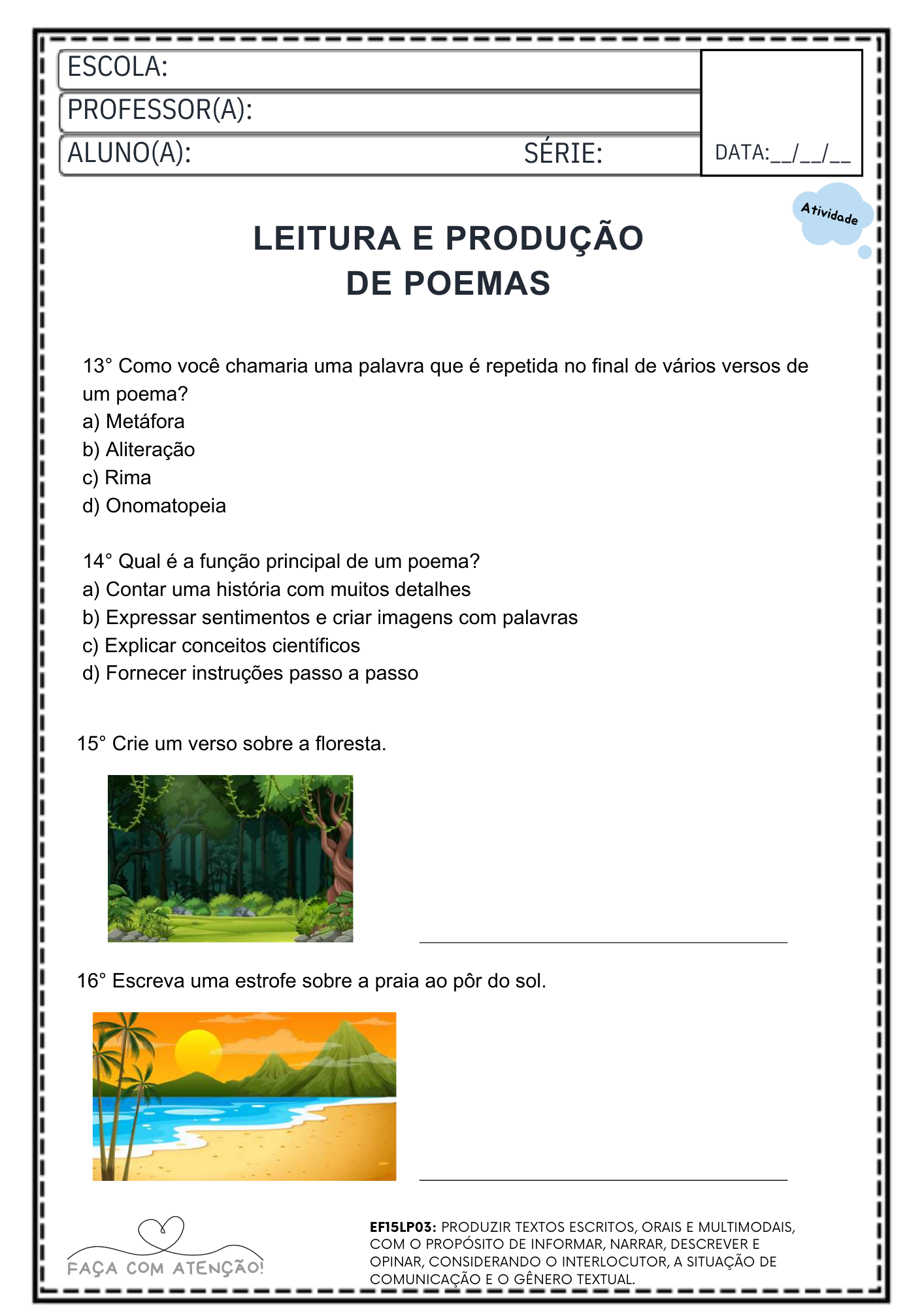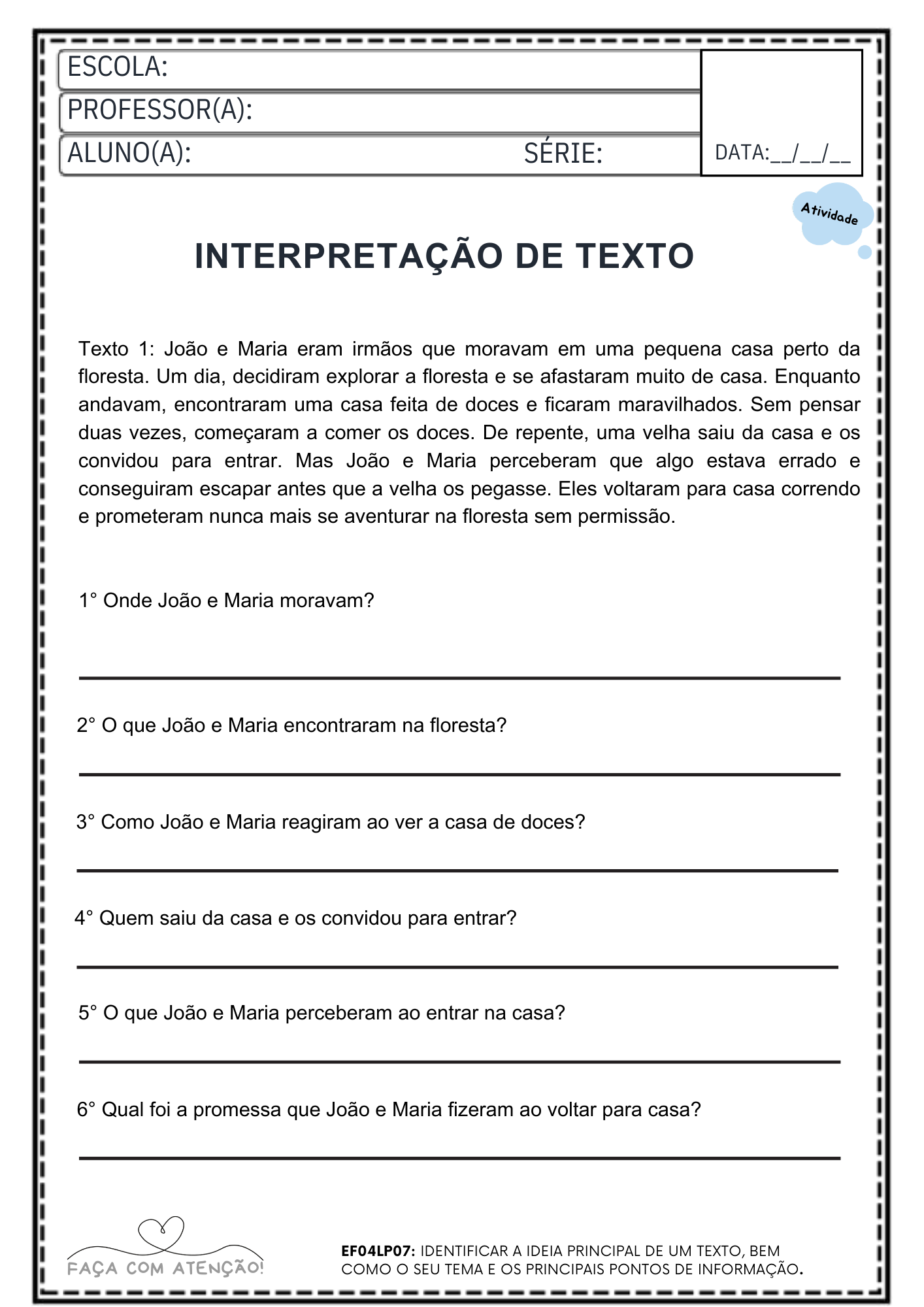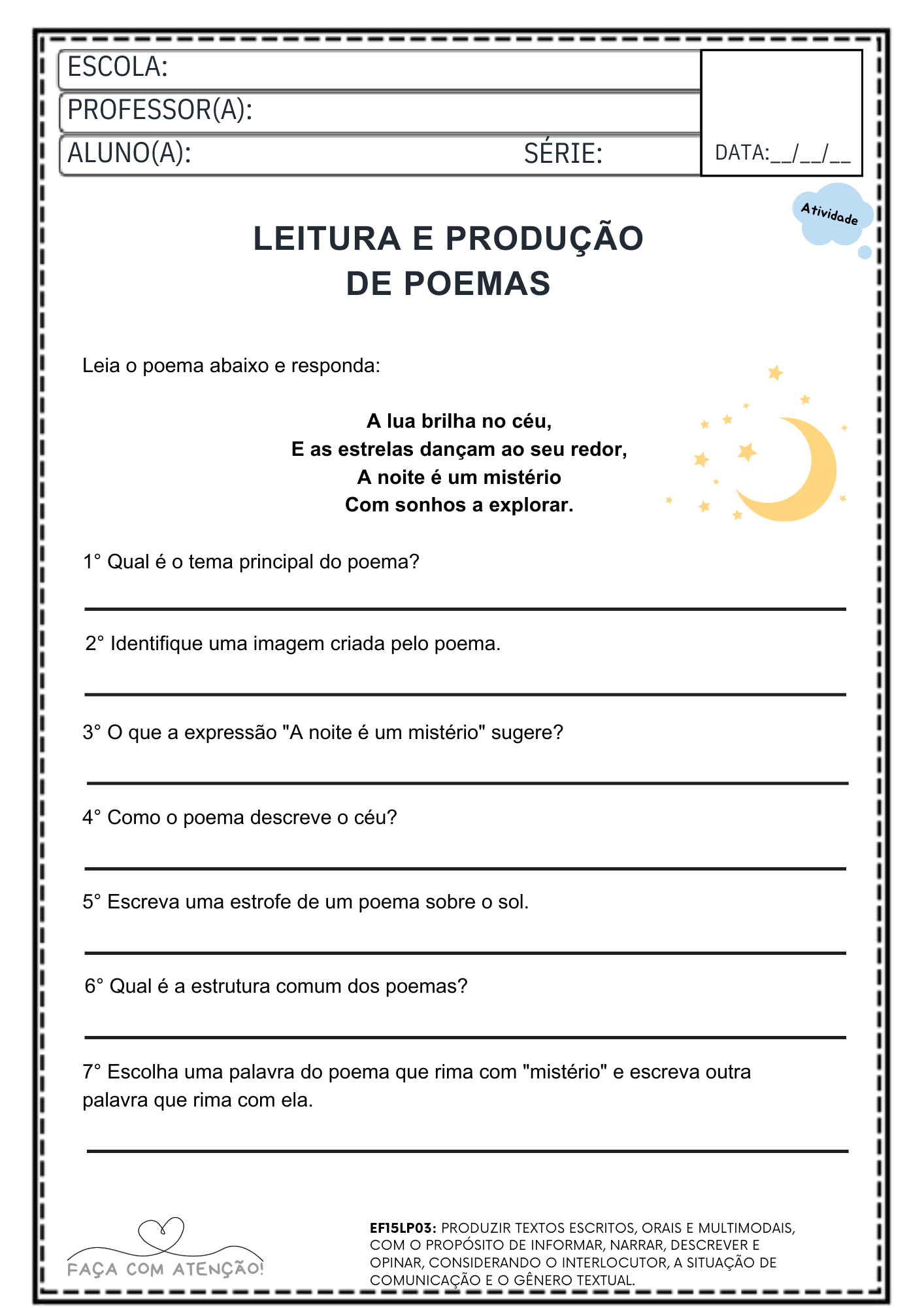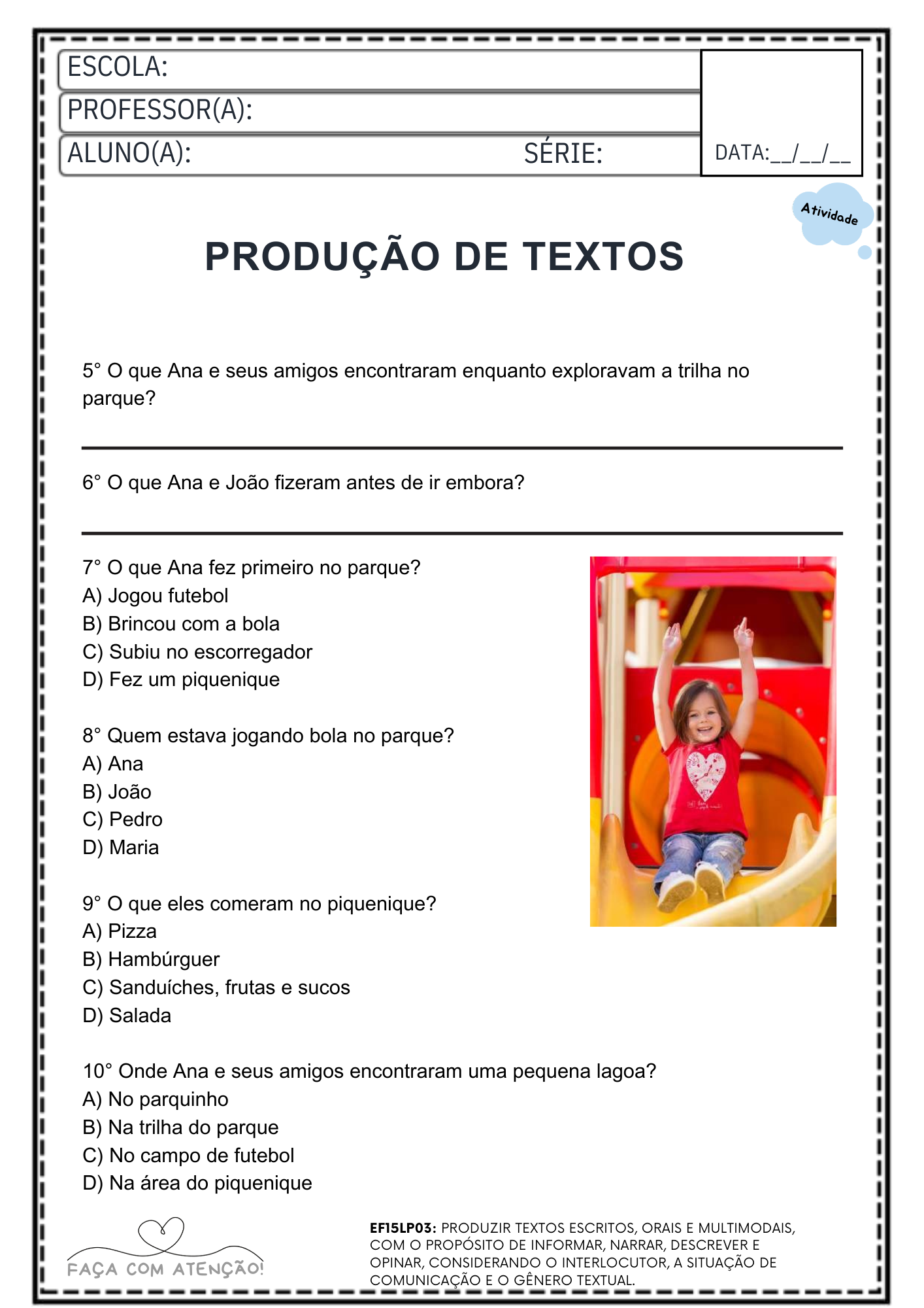 Material ideal para professores que buscam atividades prontas para imprimir, trabalhar leitura, gramática e produção de texto de forma prática em sala de aula ou reforço escolar.