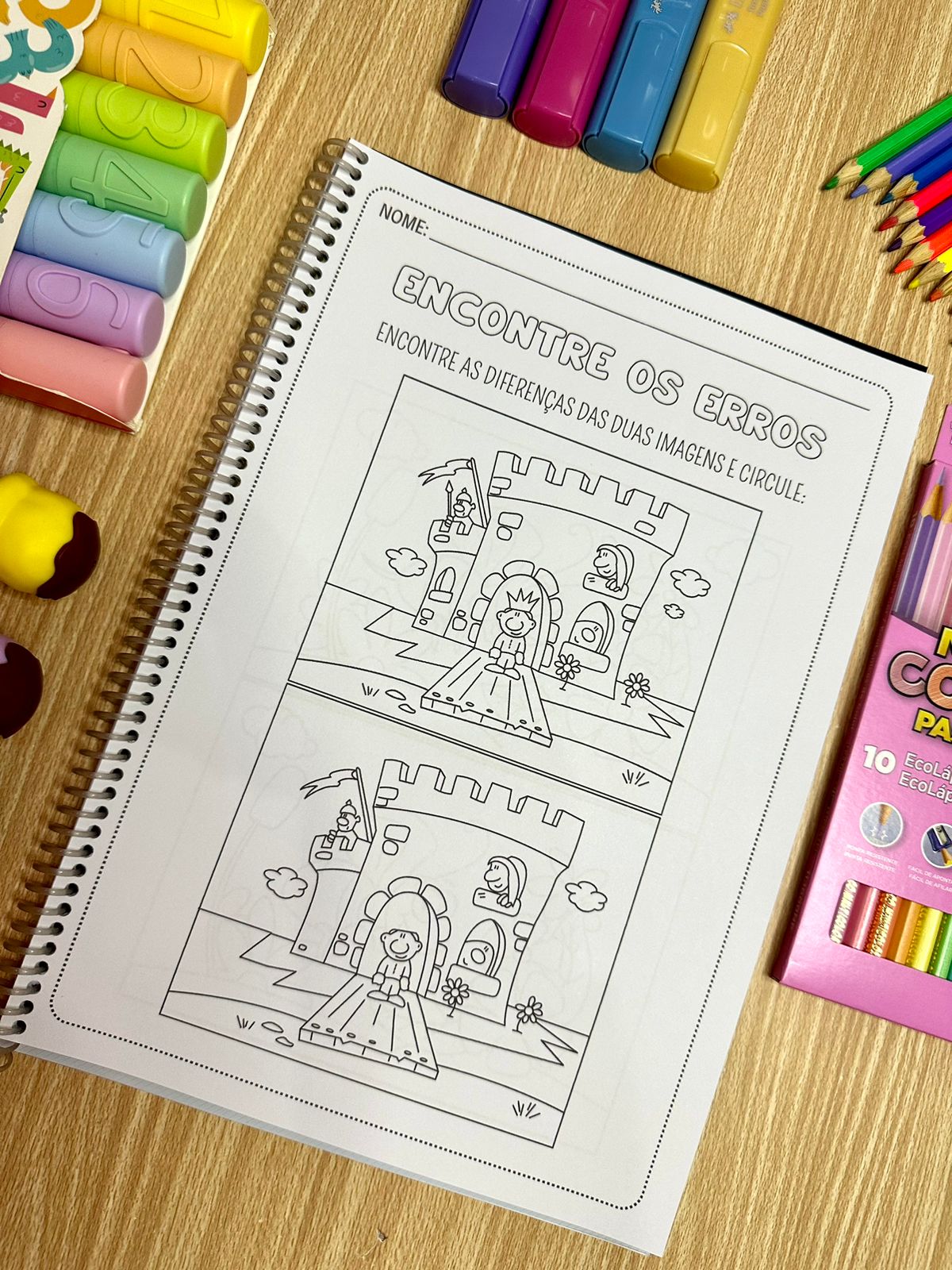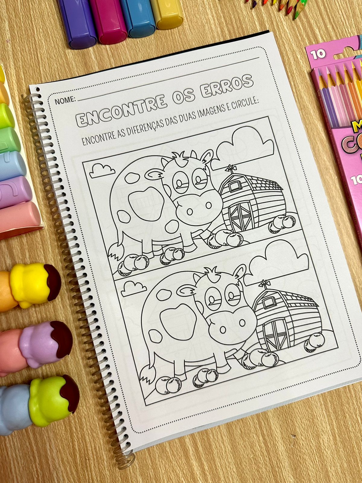 O que inclui:- 27 páginas de atividades: Com imagens coloridas e para colorir, onde as crianças precisam identificar e marcar as diferenças entre duas figuras.