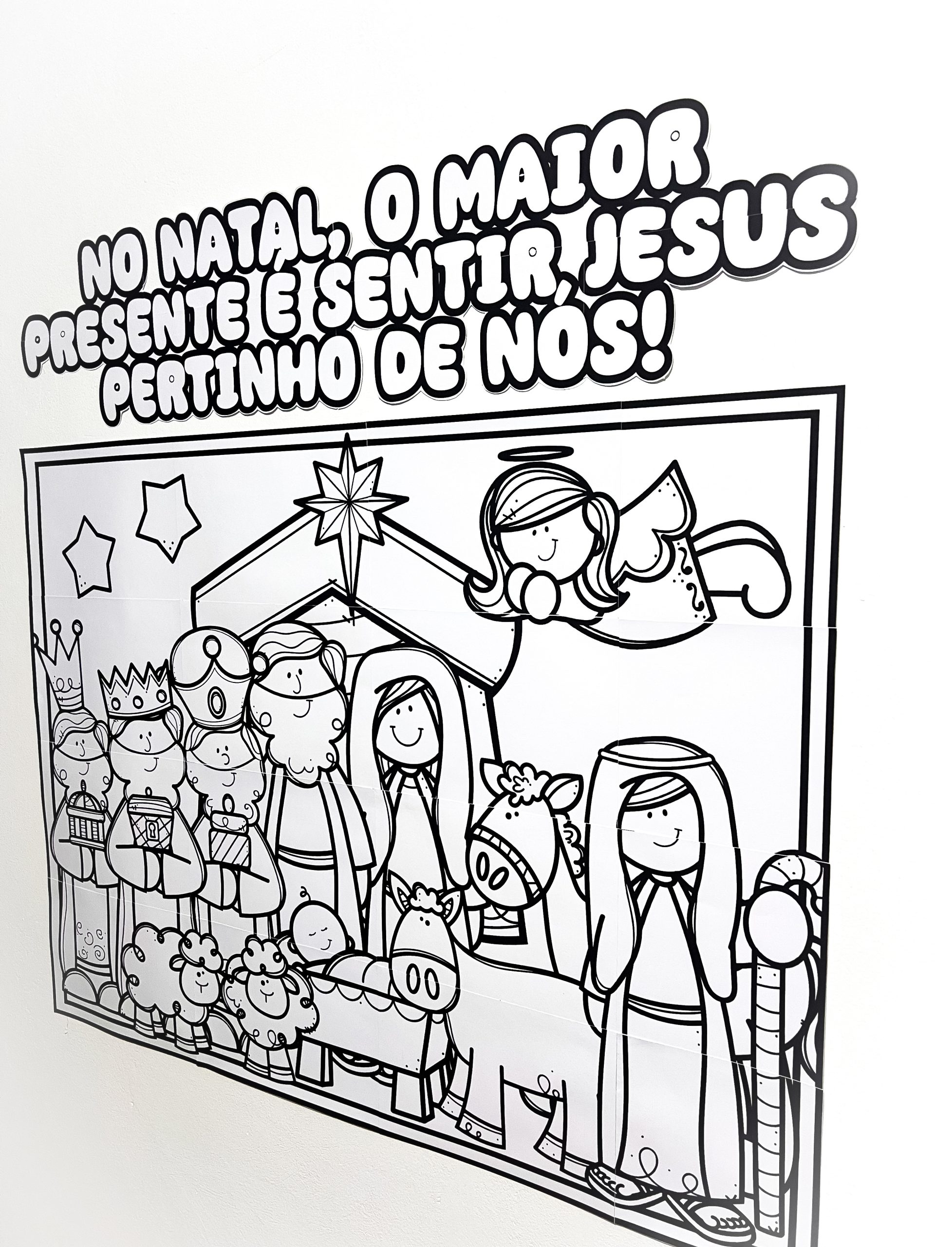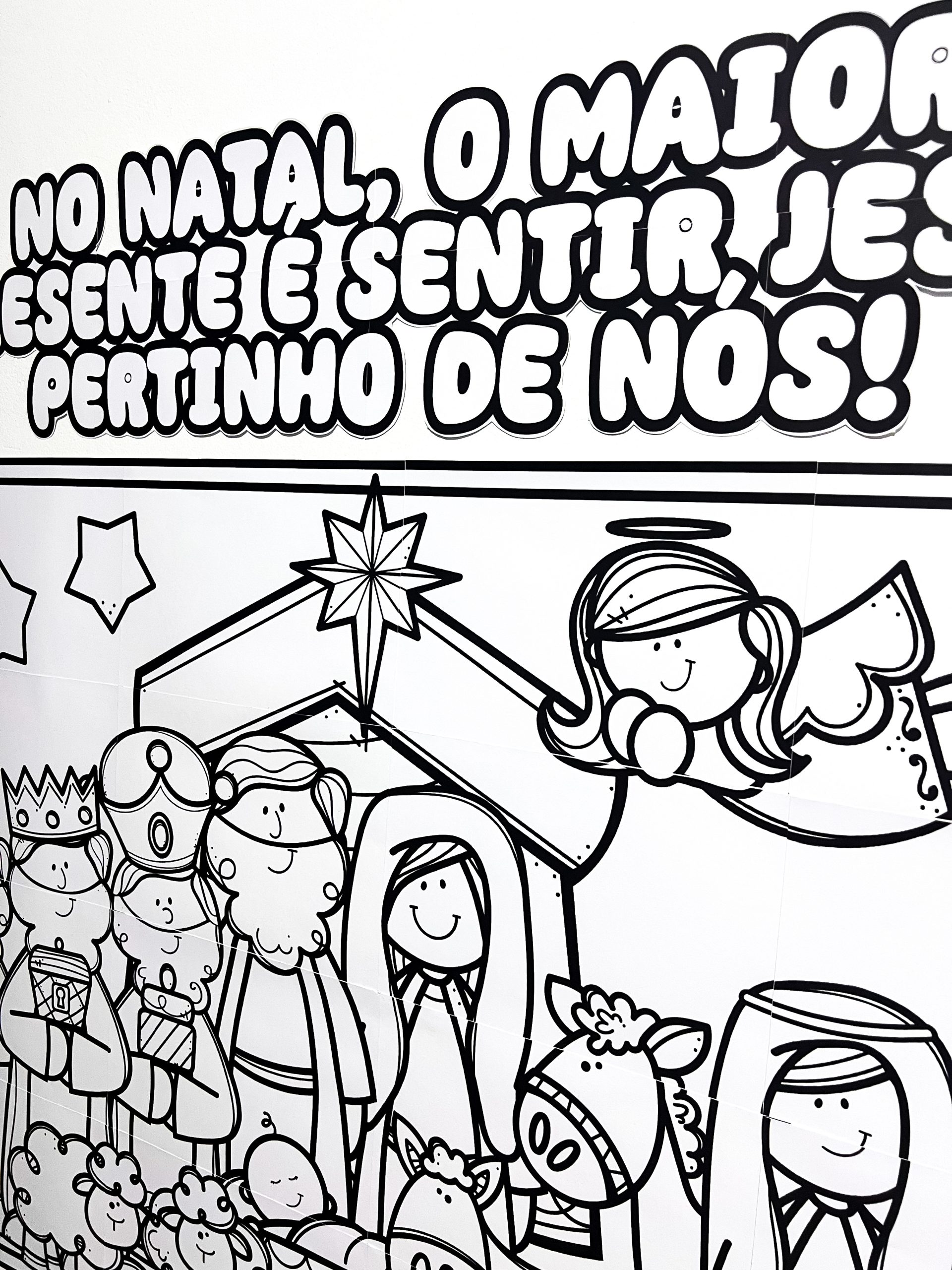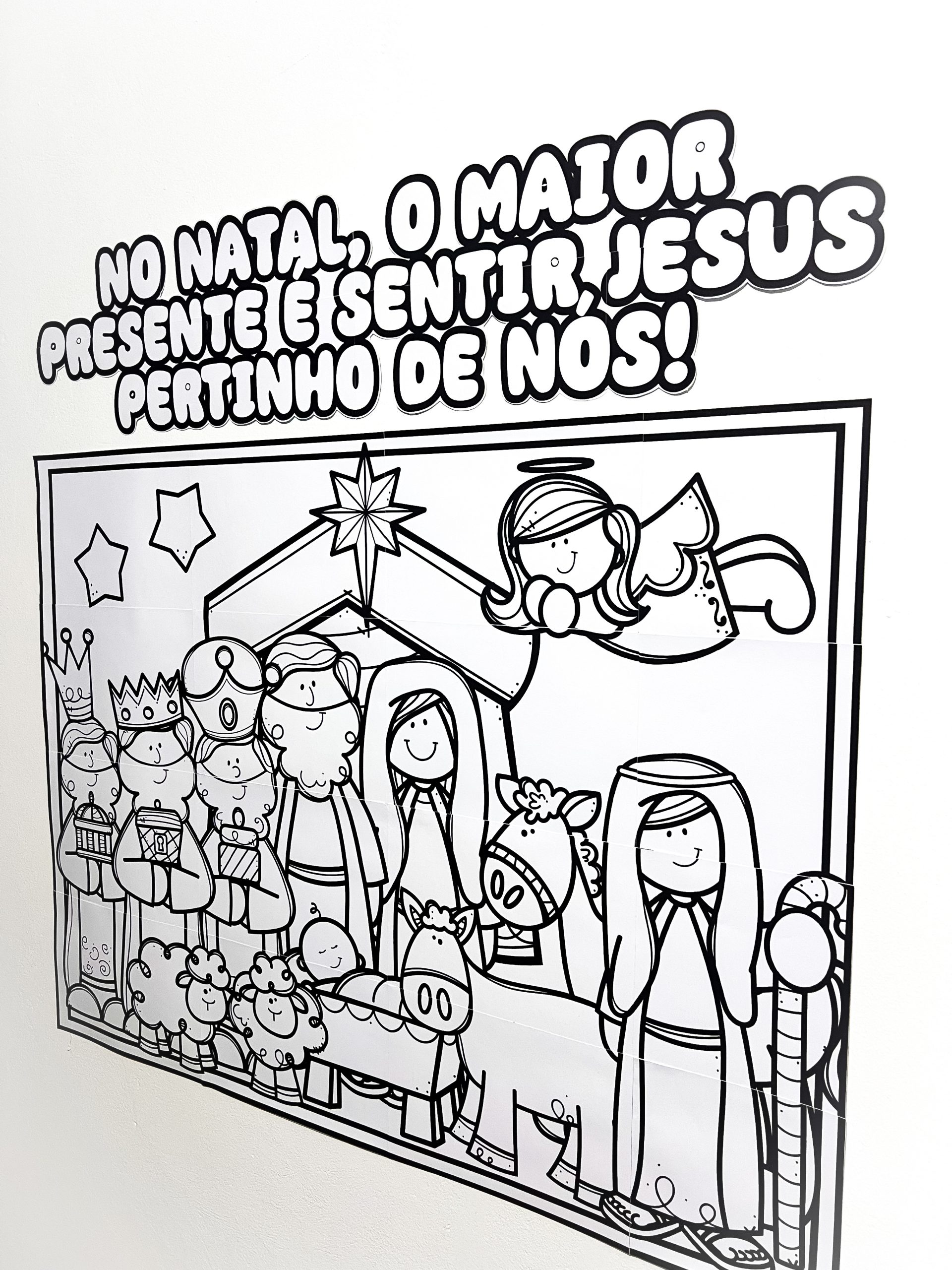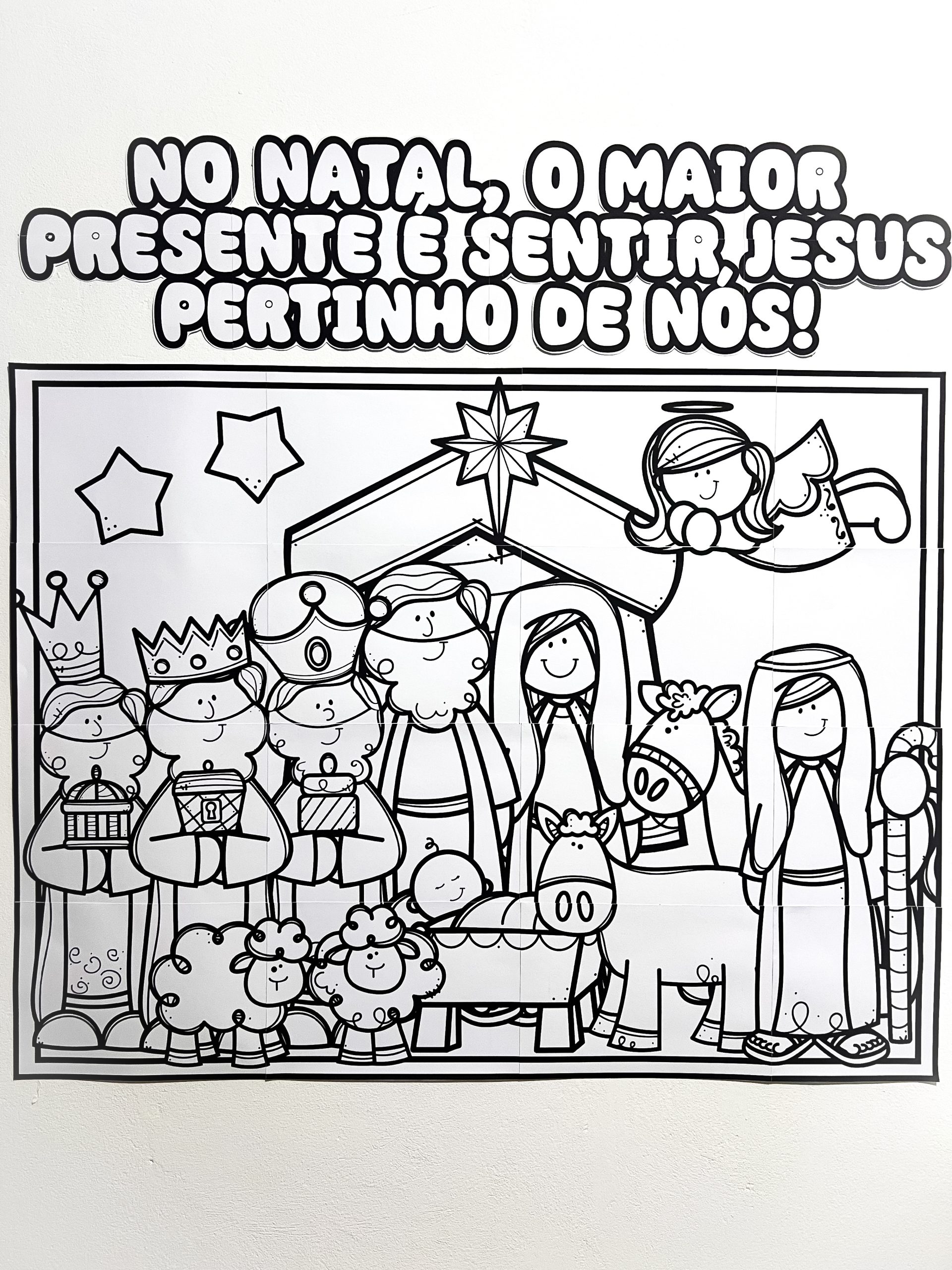 A proposta é totalmente colaborativa: cada aluno colore sua parte individualmente ou em duplas, contribuindo para a montagem final de um lindo painel cristão de Natal, cheio de significado, espiritualidade e participação ativa.