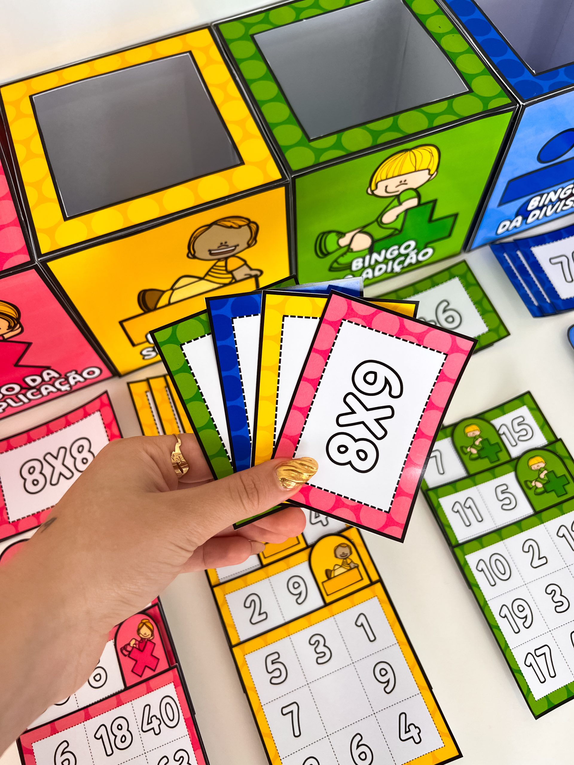O Combo de Bingos Matemáticos é um recurso pedagógico em PDF para imprimir, desenvolvido para apoiar o ensino e a prática das operações fundamentais da matemática: adição, subtração, multiplicação e divisão.
