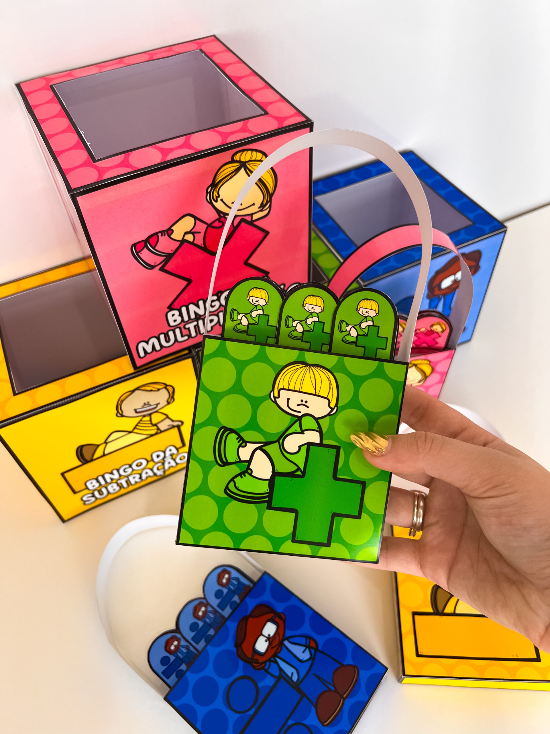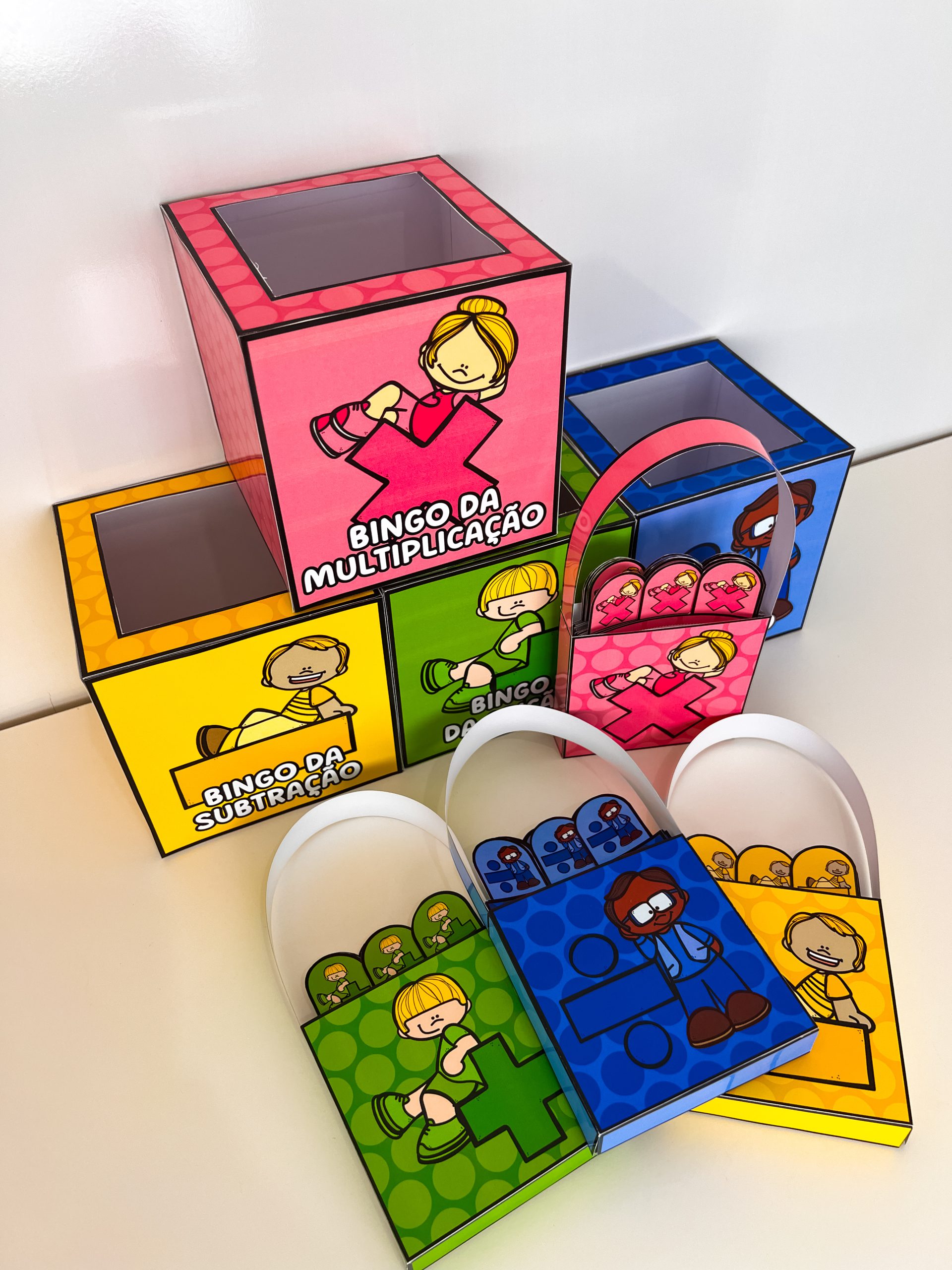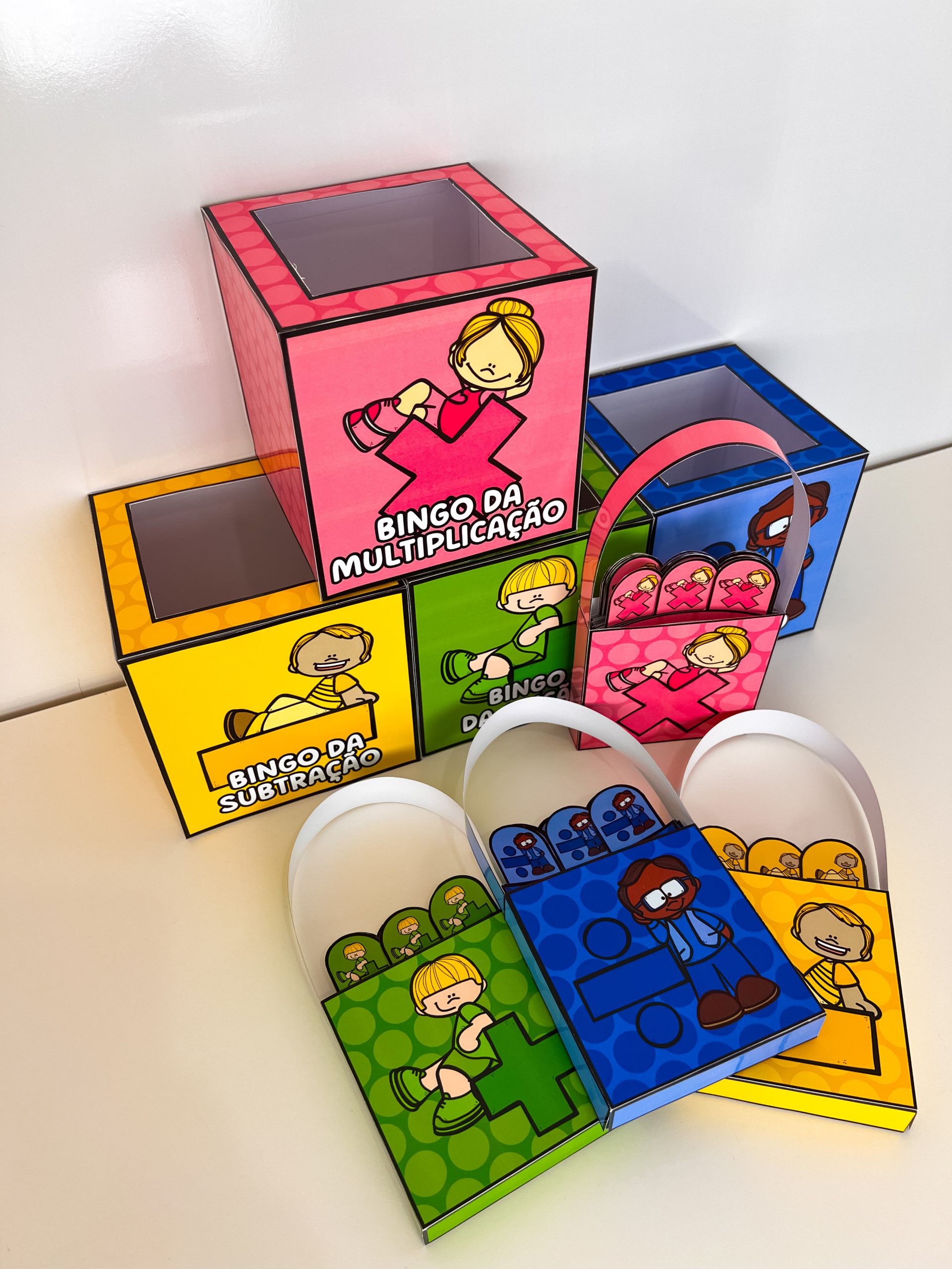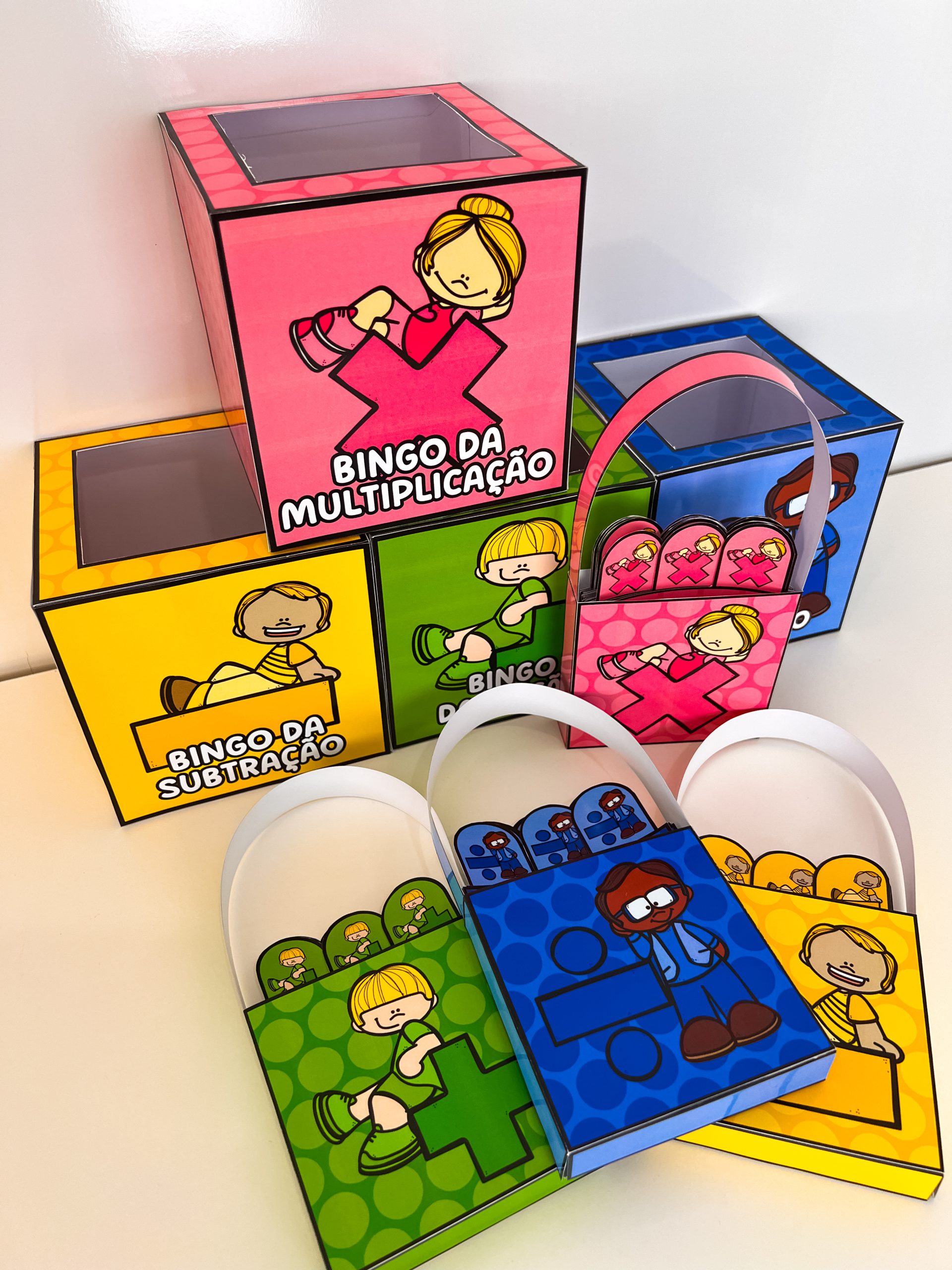 4 moldes de caixinhas para sorteio (um para cada operação)