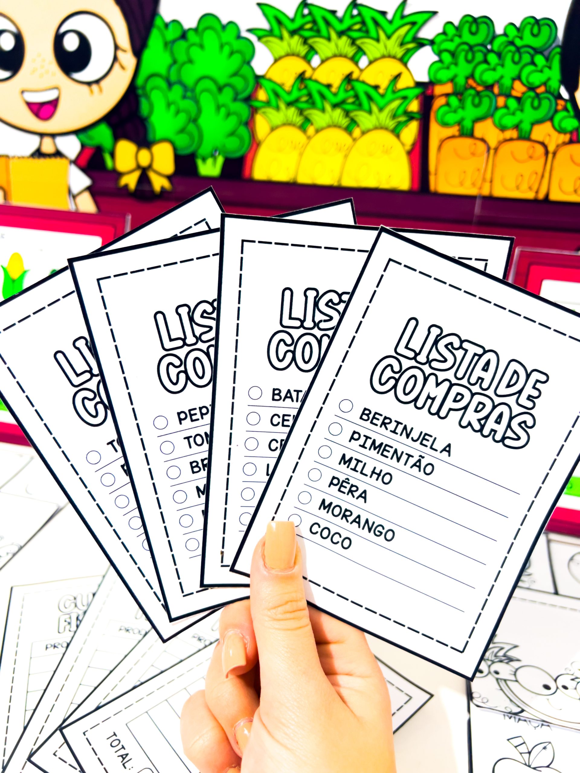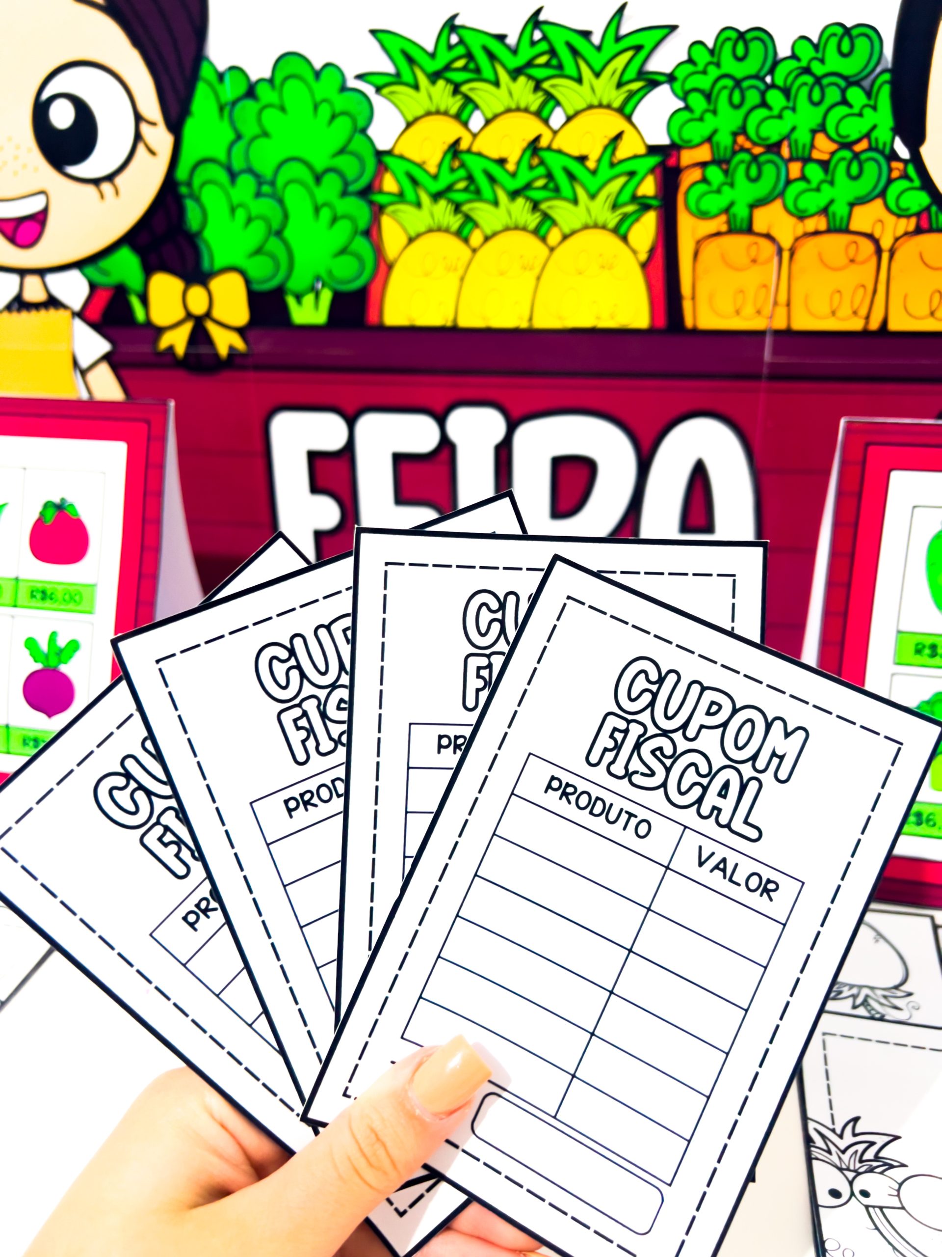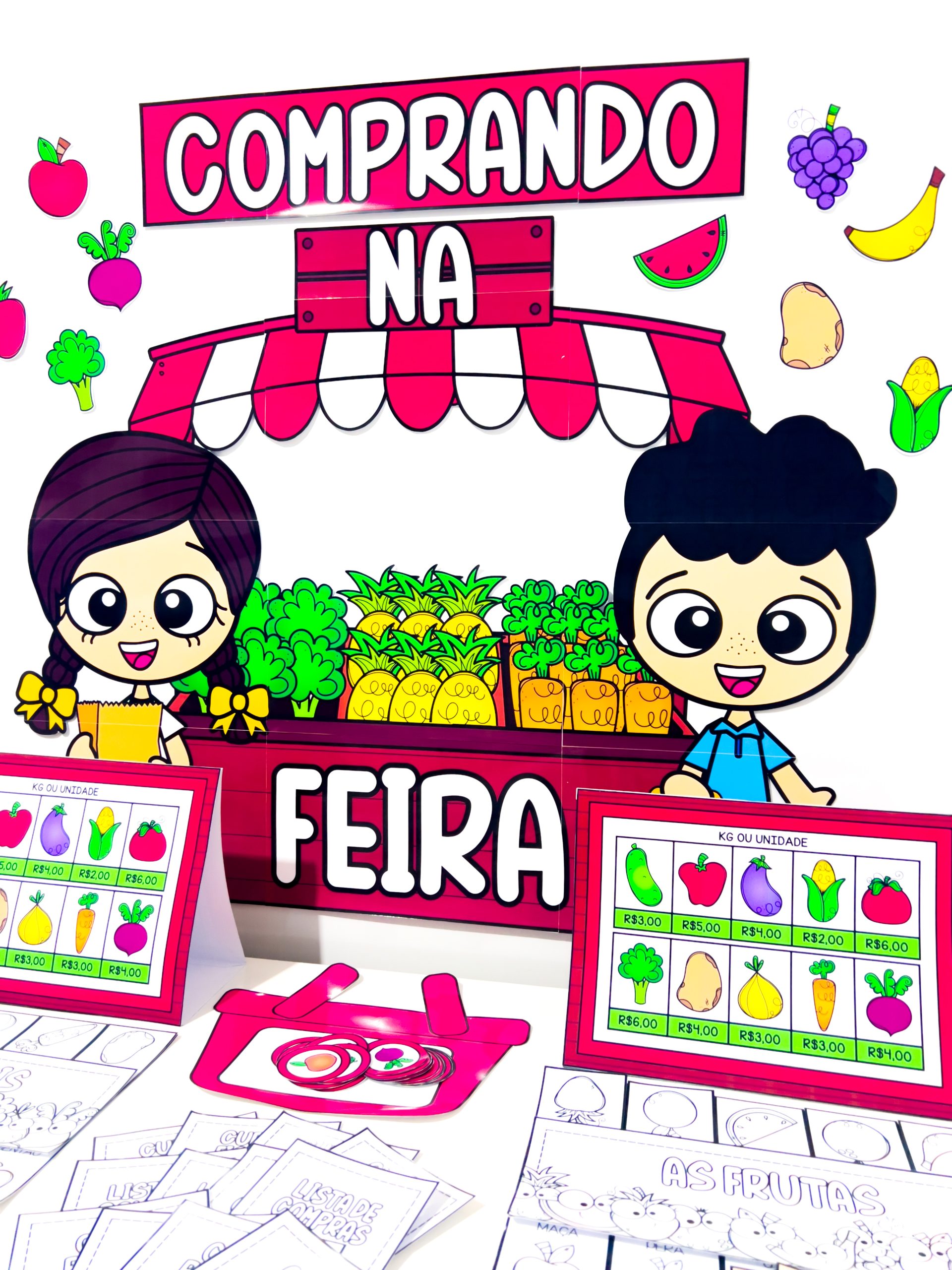 O Comprando na Feira para Imprimir – Jogo Pedagógico com Dinheiro e Matemática é um material pedagógico lúdico e completo criado para proporcionar às crianças uma experiência realista de compras, trabalhando de forma prática conteúdos de matemática, leitura, escrita, noções de valor e convivência social.