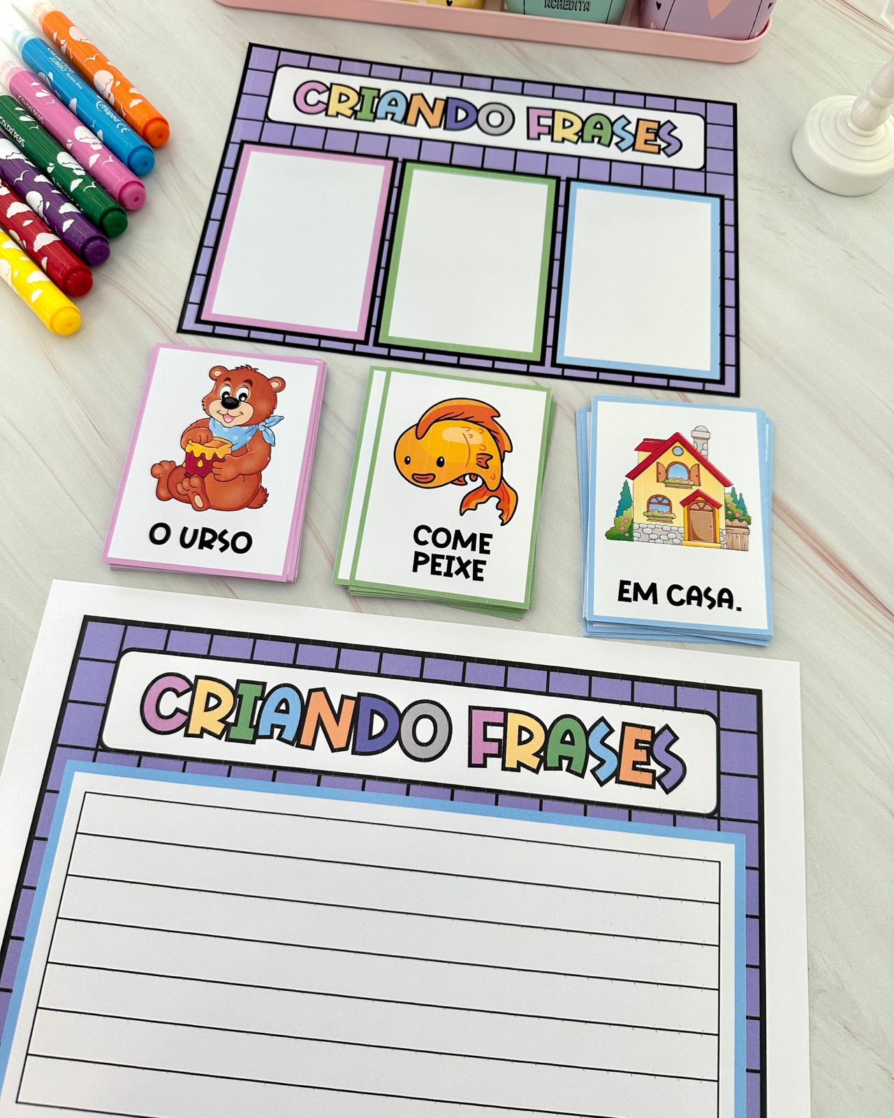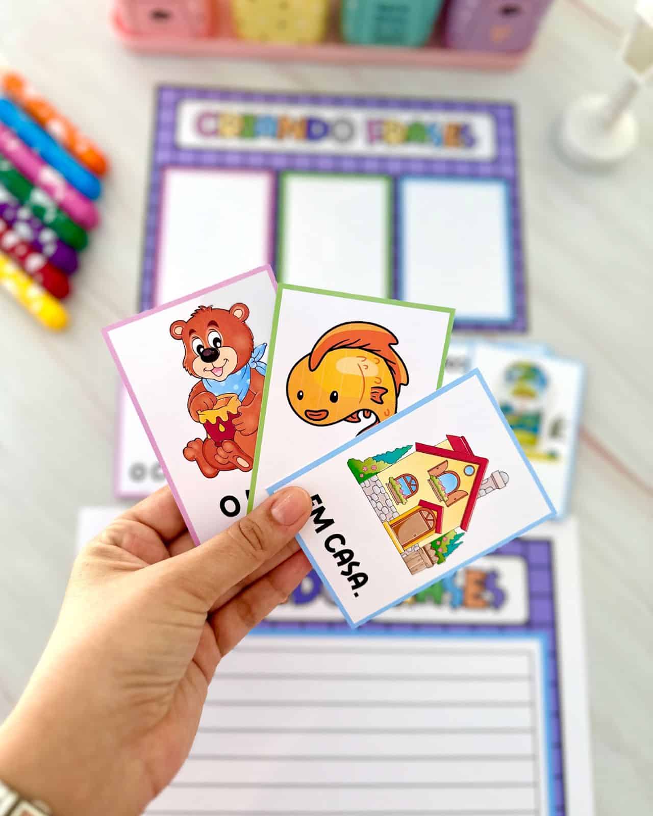 Este material facilita a compreensão de frases, enriquece o vocabulário e promove a leitura de figuras ou palavras, tornando o aprendizado divertido e interativo!