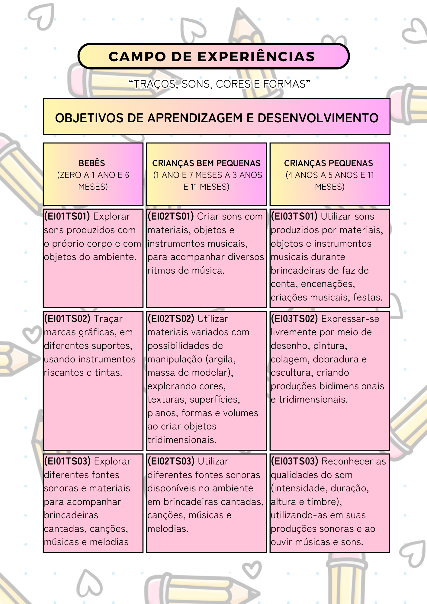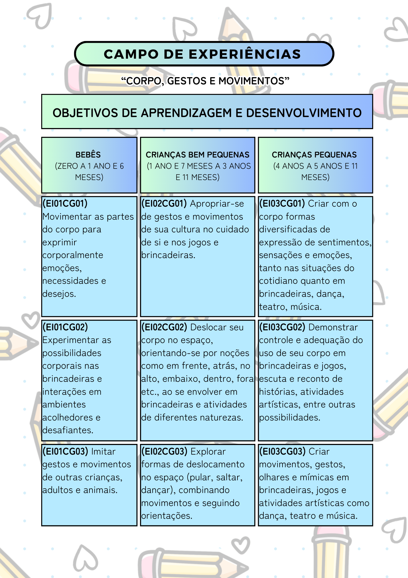 O Diário de Bordo foi estruturado com base na Base Nacional Comum Curricular (BNCC) atualizada 2026 para Educação Infantil, contemplando: