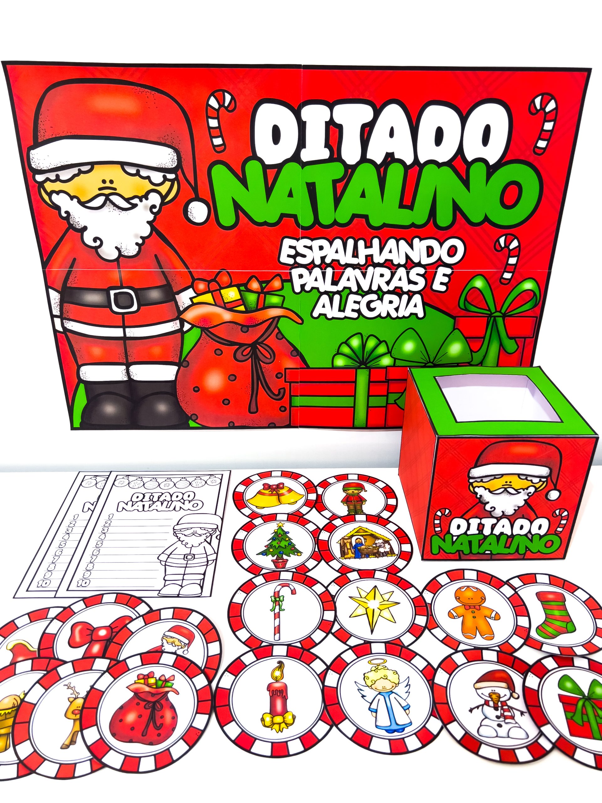 O Ditado Natalino para Imprimir – Atividade de Escrita com Tema de Natal é um material pedagógico lúdico, temático e envolvente, ideal para trabalhar escrita, atenção, leitura e ampliação de vocabulário de forma prazerosa durante o período natalino.
