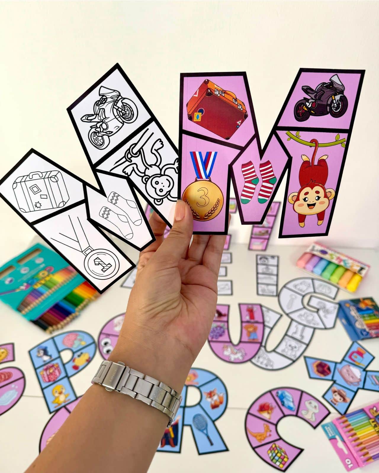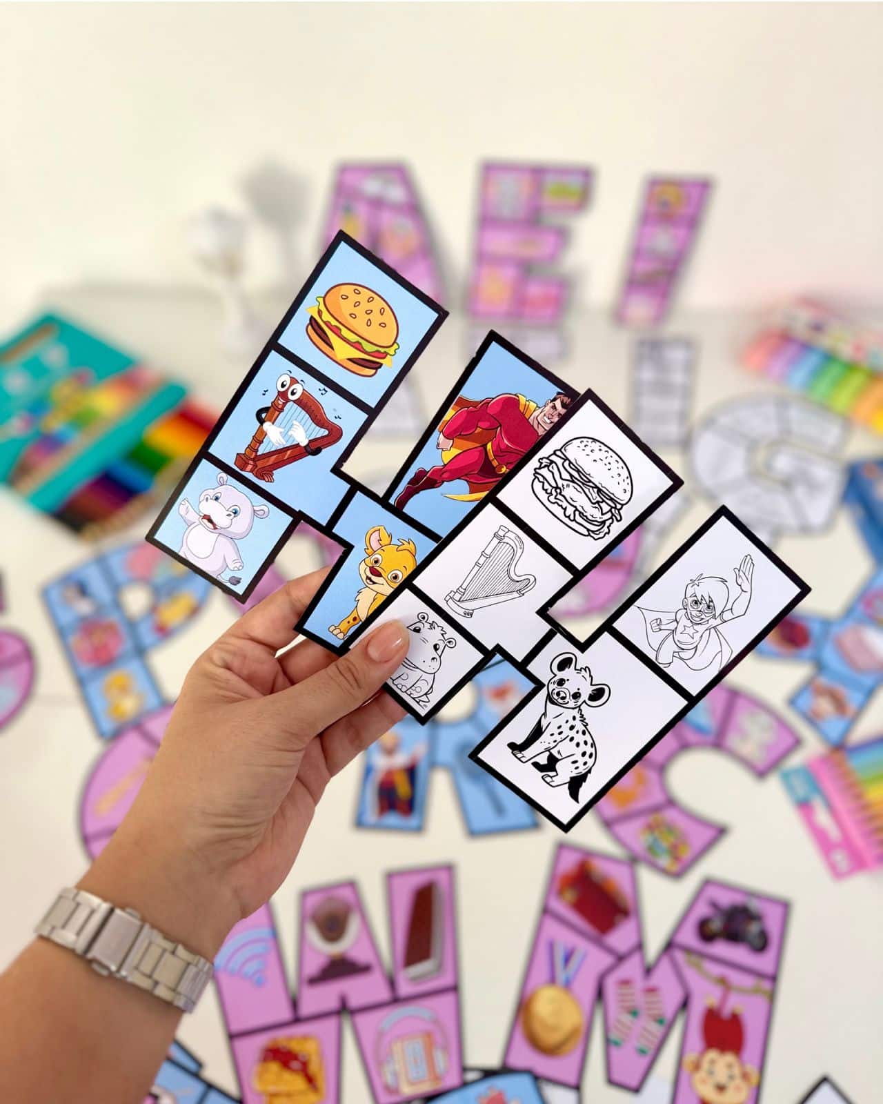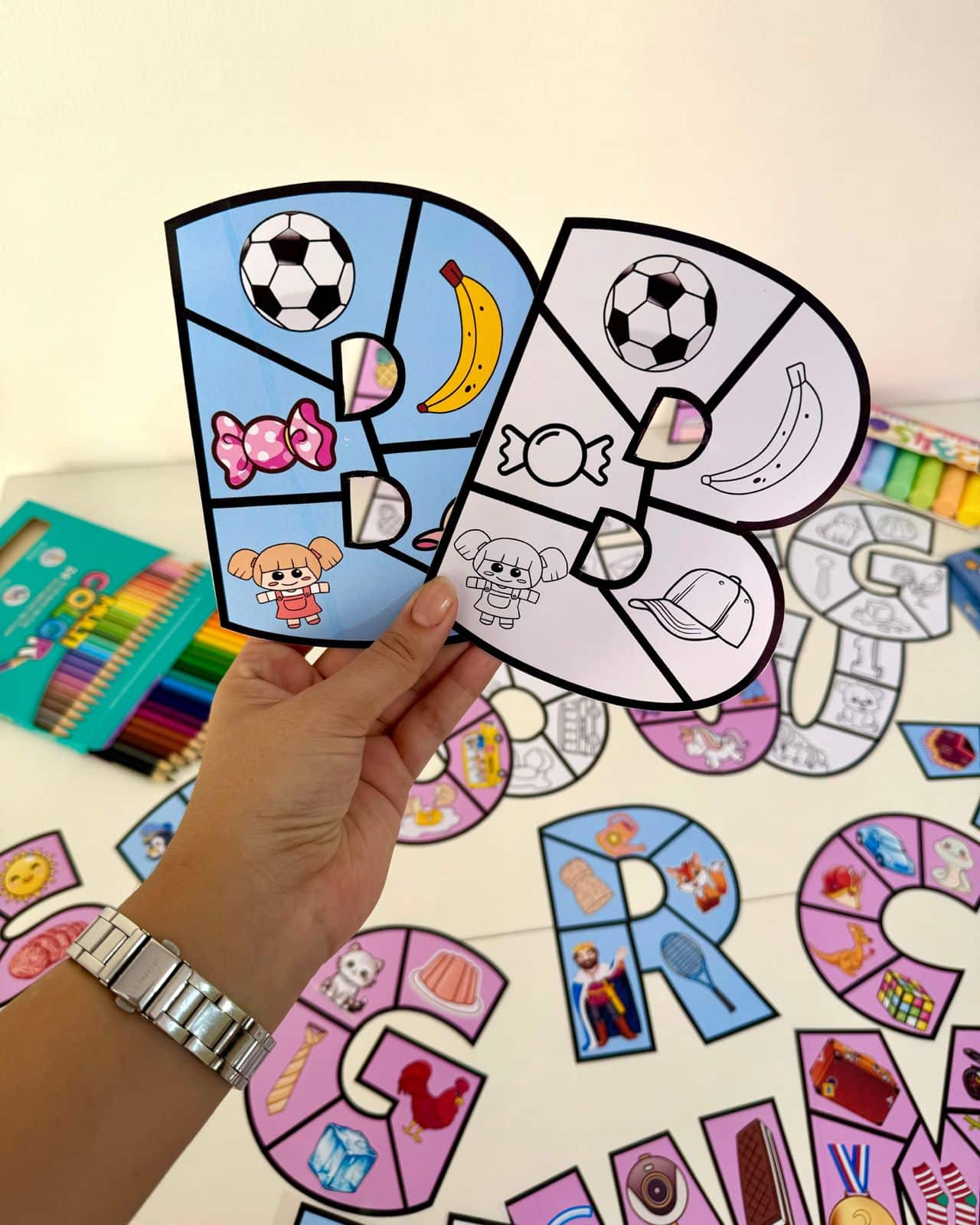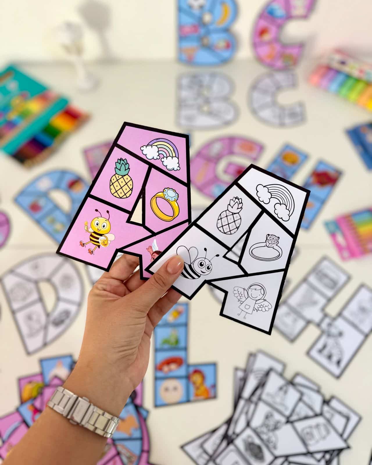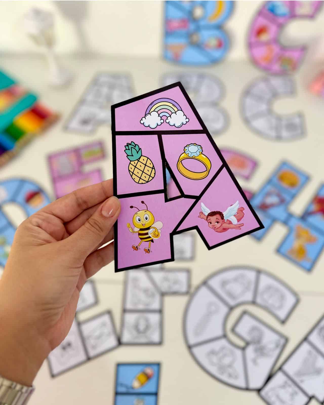 - Recurso de Mesa: A criança monta o quebra-cabeça da letra.