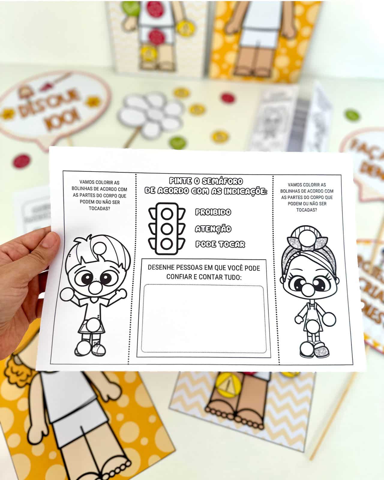 - Lapbook Semáforo do Toque: Um recurso interativo para ajudar as crianças a entenderem quais partes do corpo podem ou não ser tocadas. Este lapbook utiliza um semáforo visual para indicar os limites apropriados de toque.