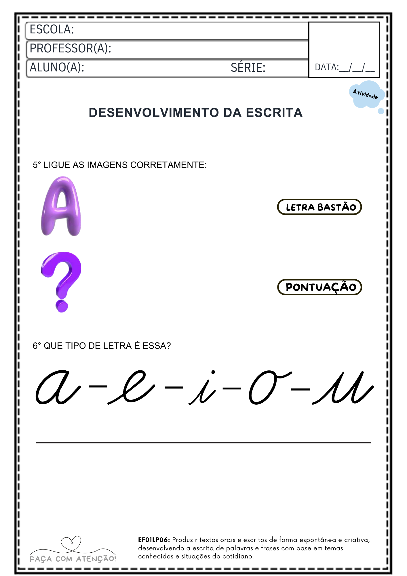 Kit Reforço Escolar 1º Ano – Atividades Completas com BNCC + Gabarito