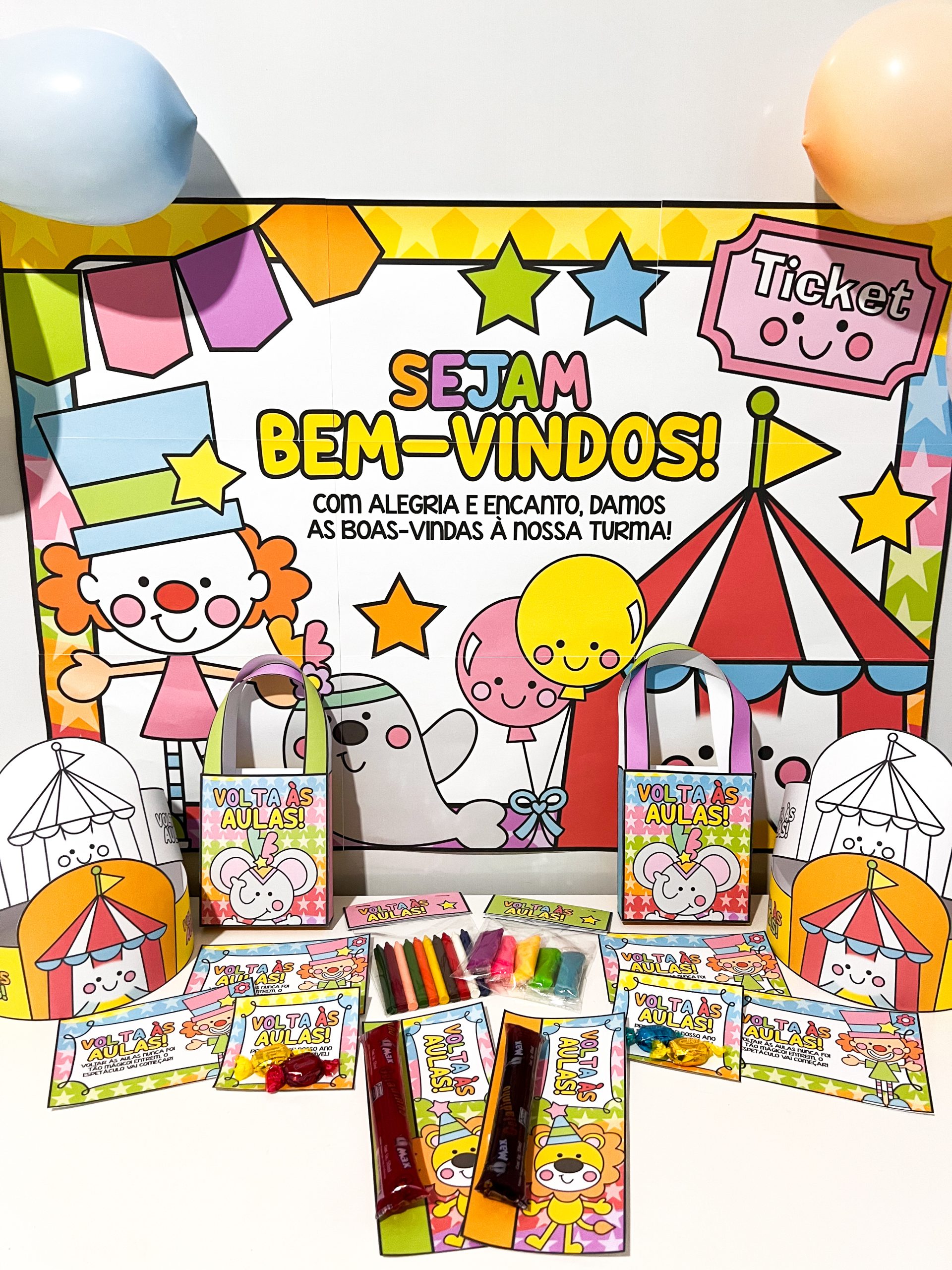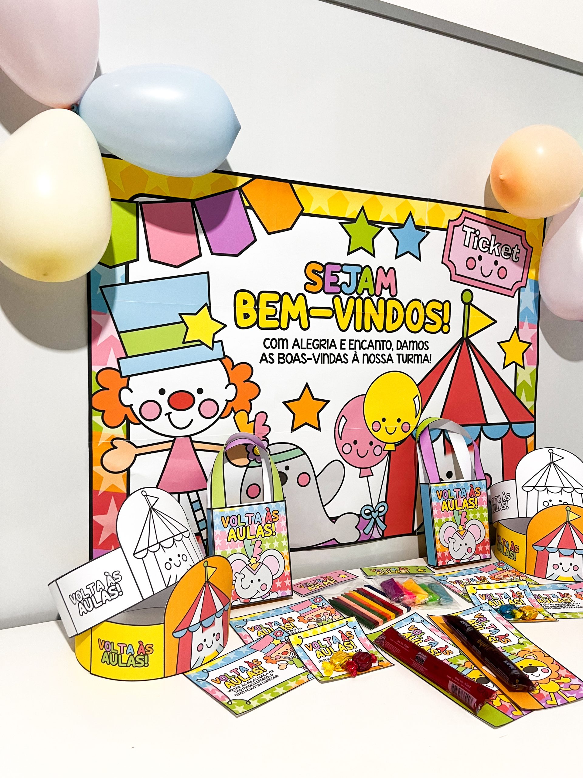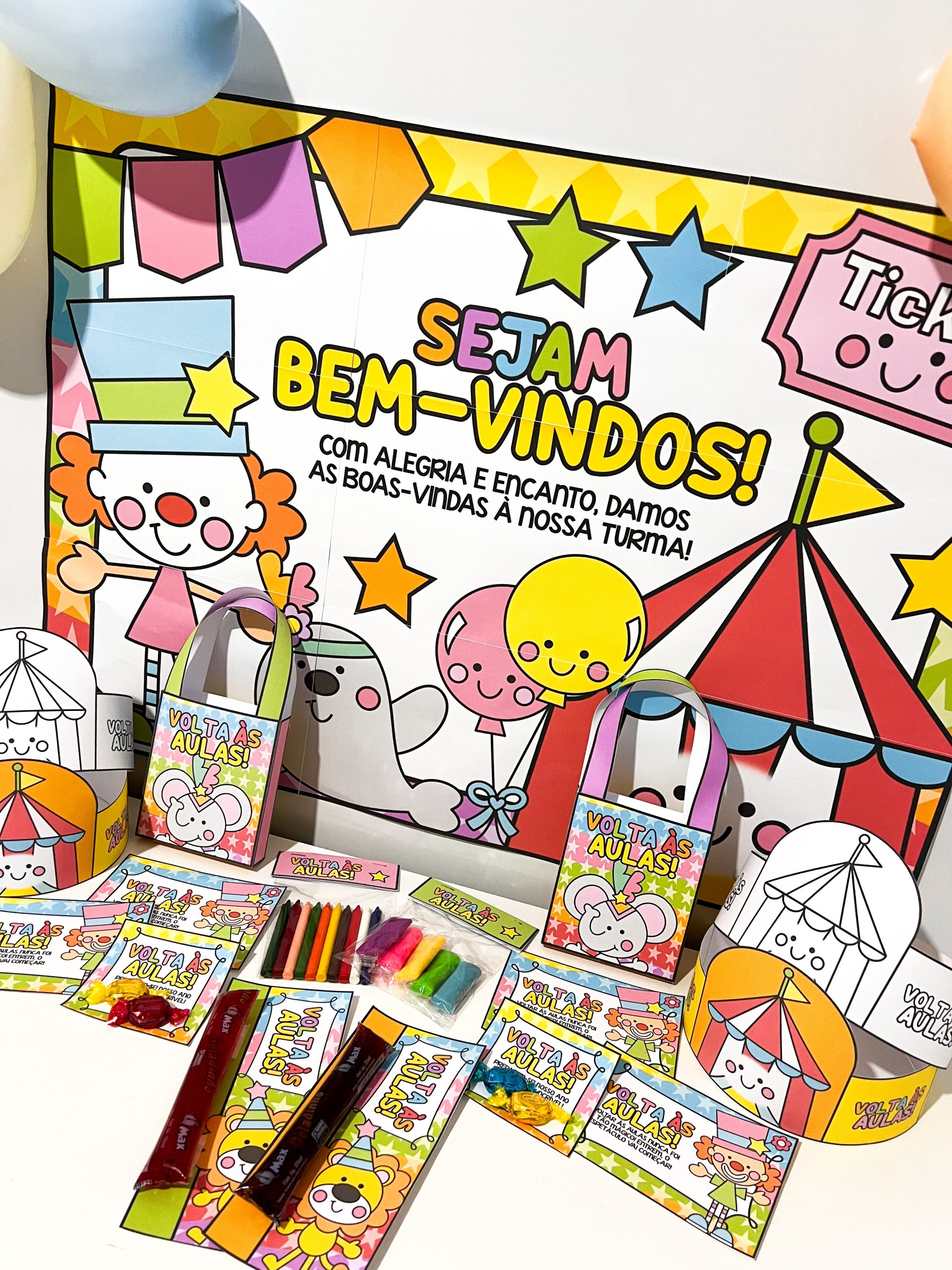 🎨 1 painel decorativo (9 folhas A4) – transforma a recepção da turma em um cenário vibrante, acolhedor e cheio de magia circense.