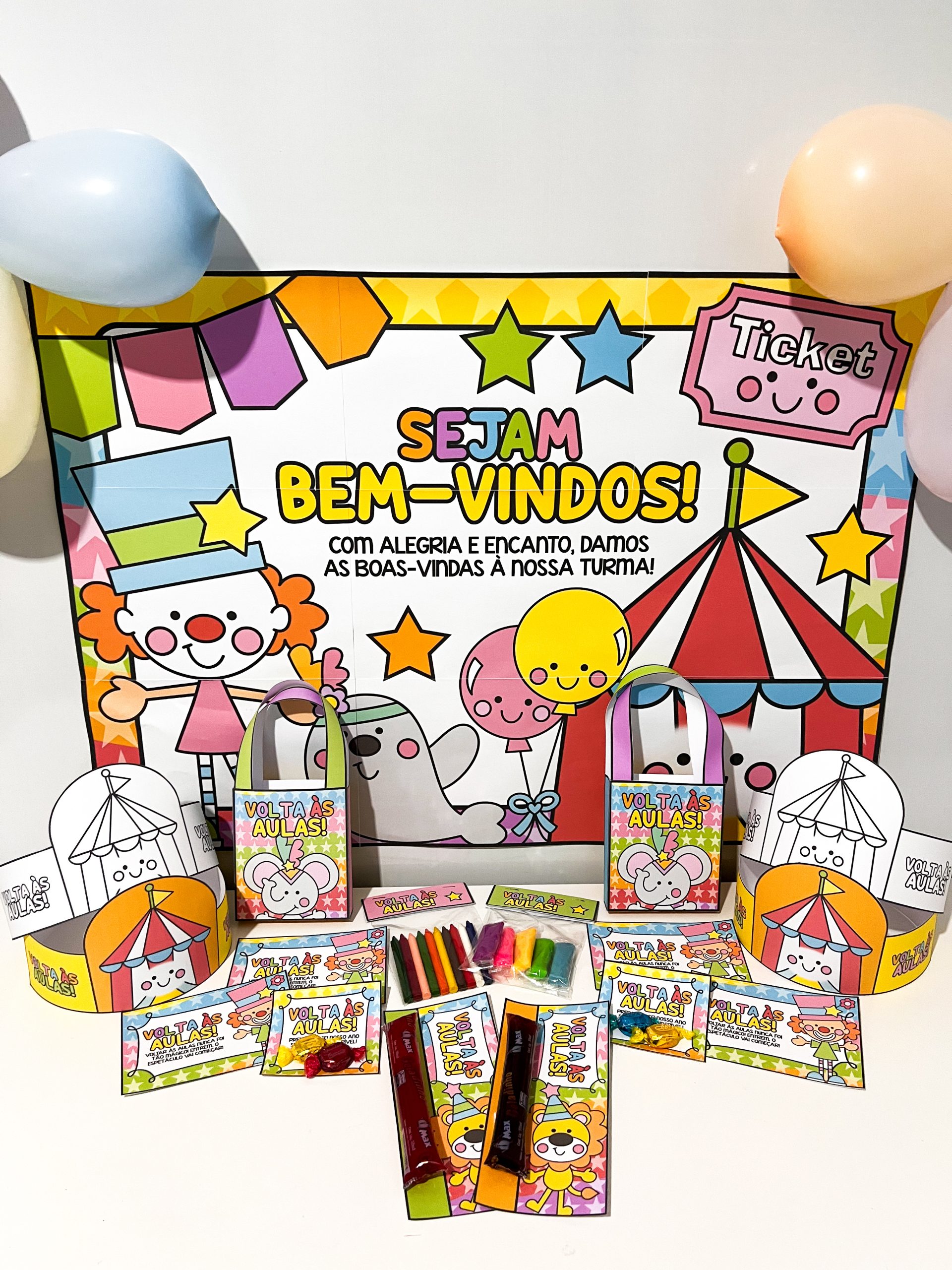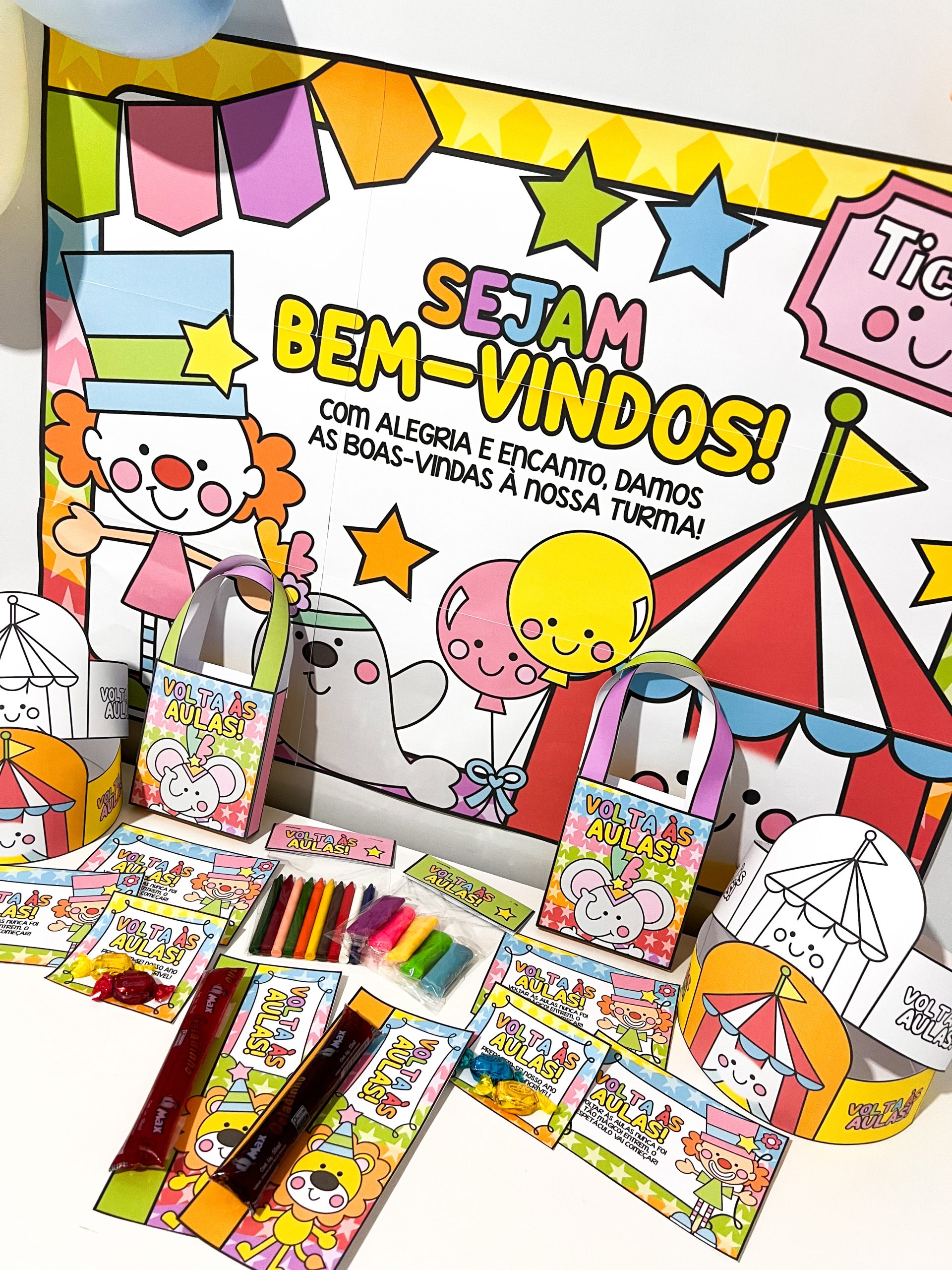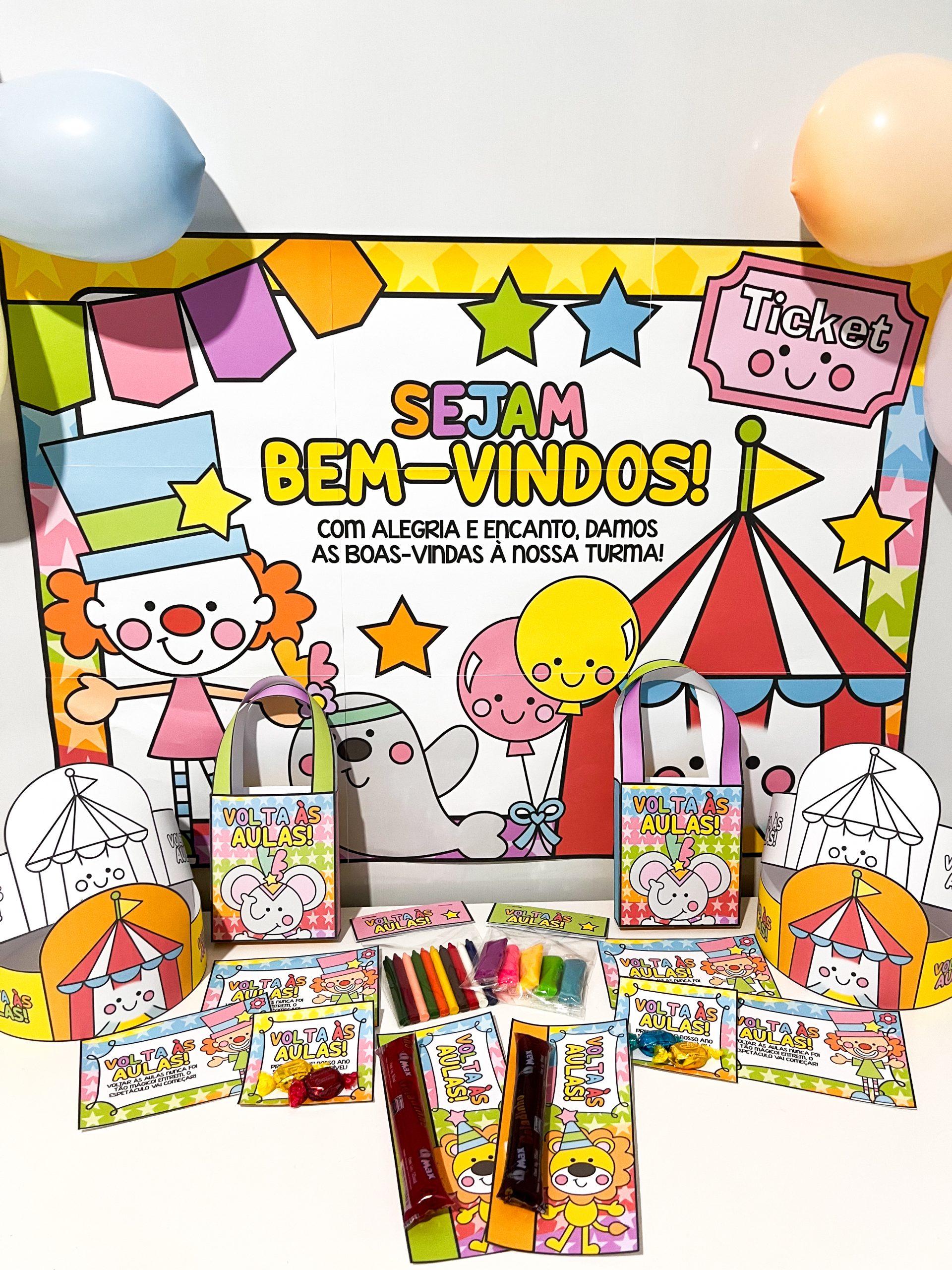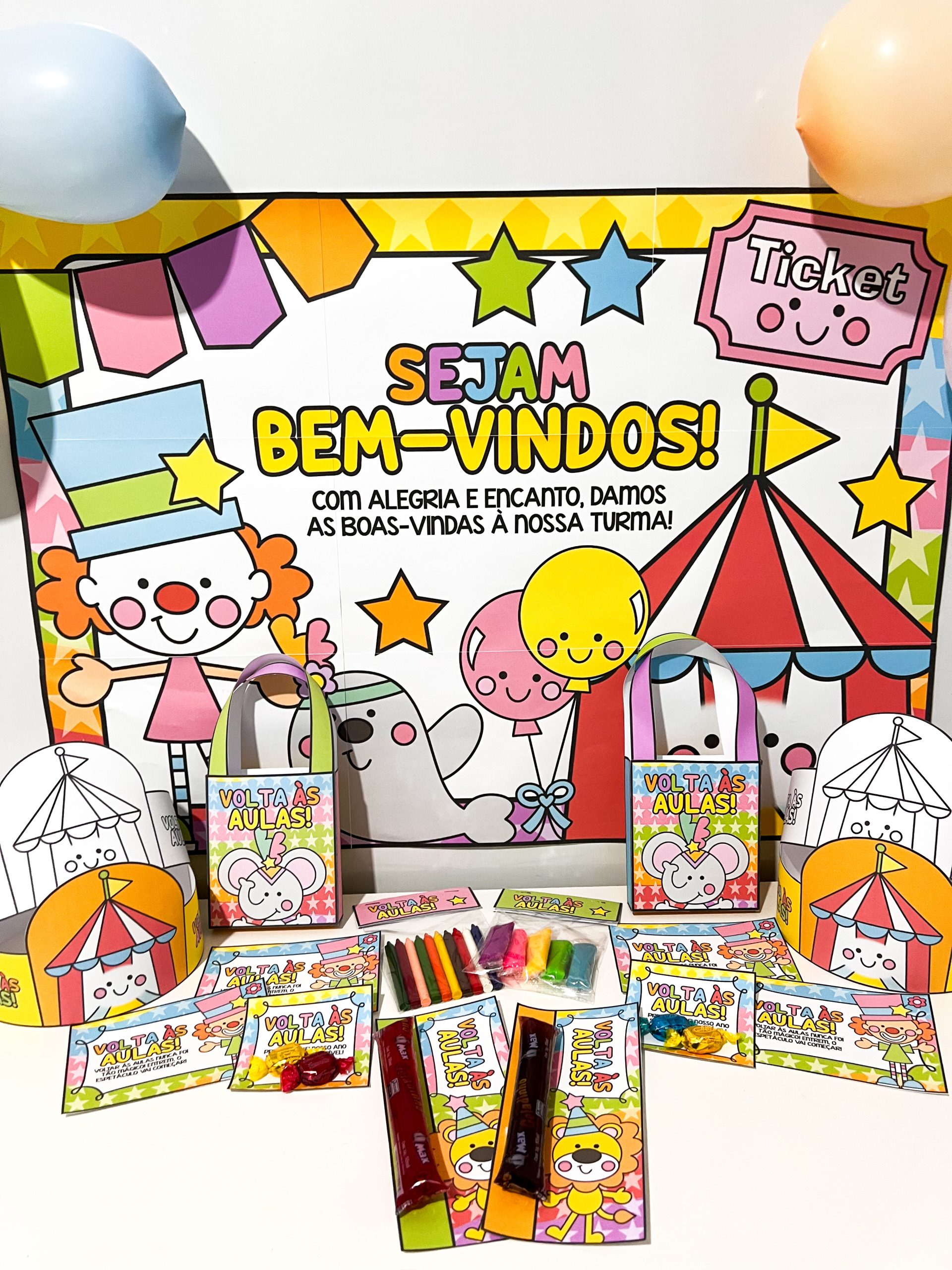 🎨 1 painel decorativo (9 folhas A4) – transforma a recepção da turma em um cenário vibrante, acolhedor e cheio de magia circense.
