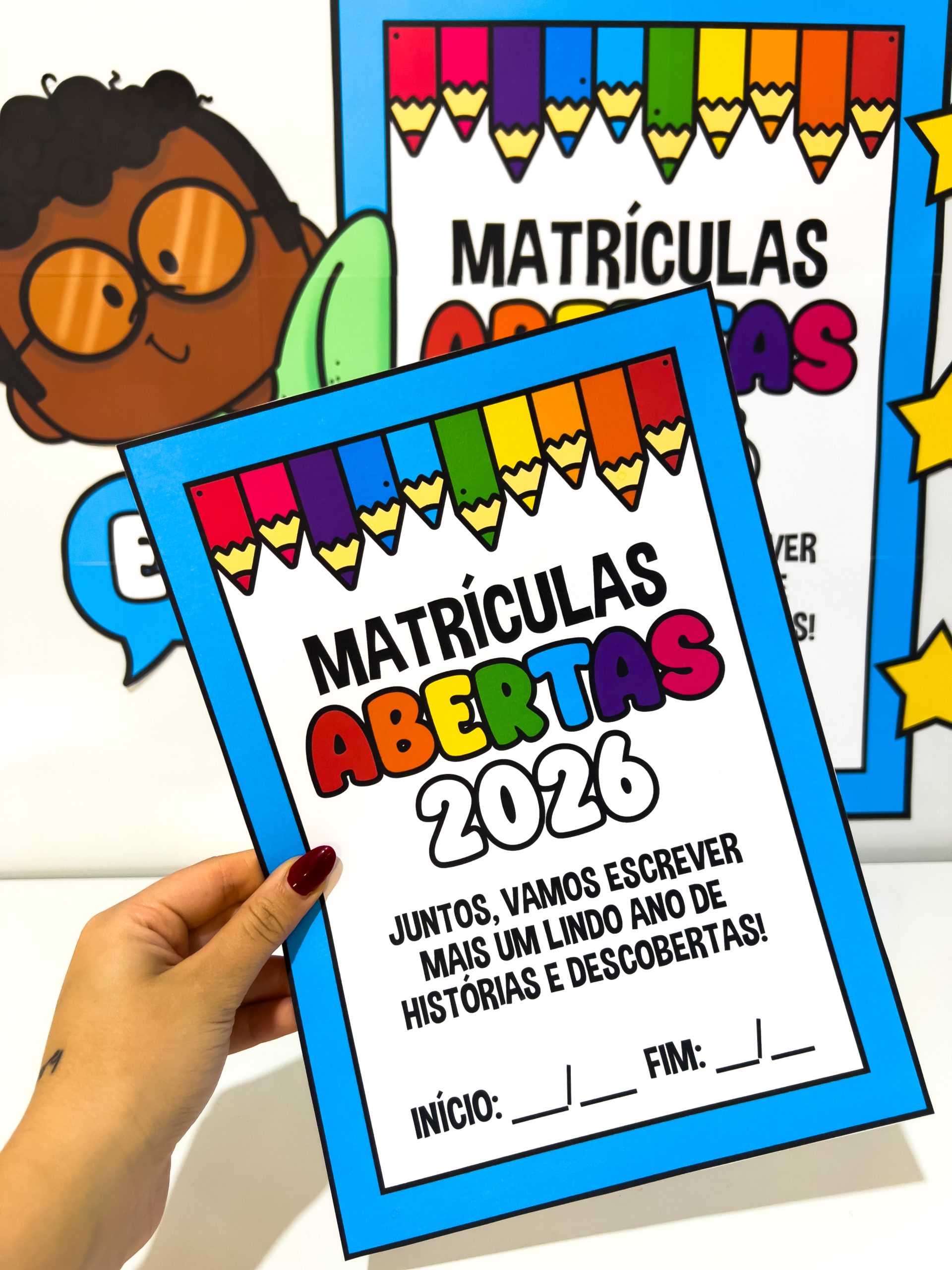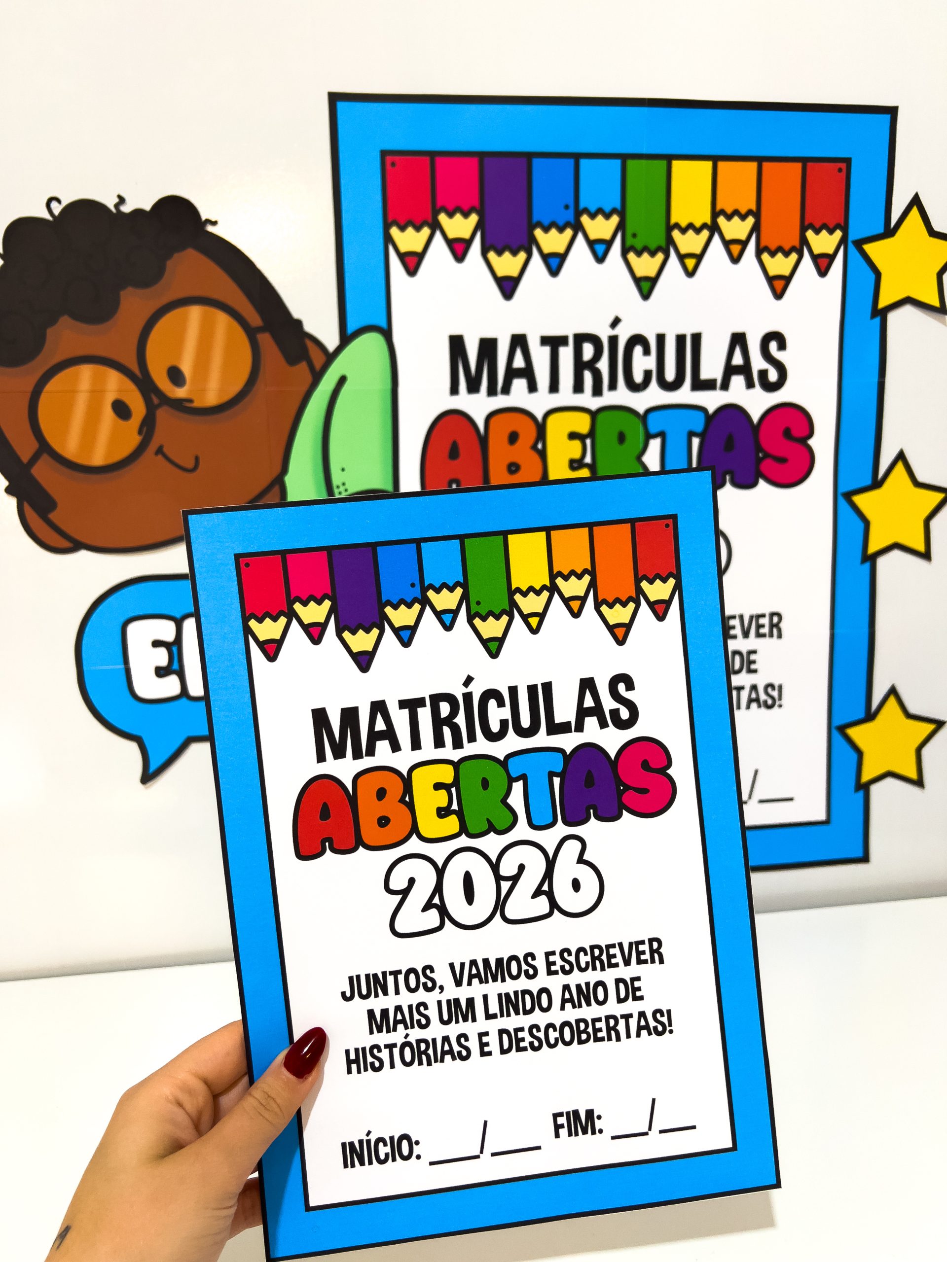 O Painel Matrículas Abertas 2026 – Decoração Escolar para Mural e Recepção é um material visualmente encantador, criado para destacar o período de matrículas e rematrículas de forma alegre, acolhedora e profissional.