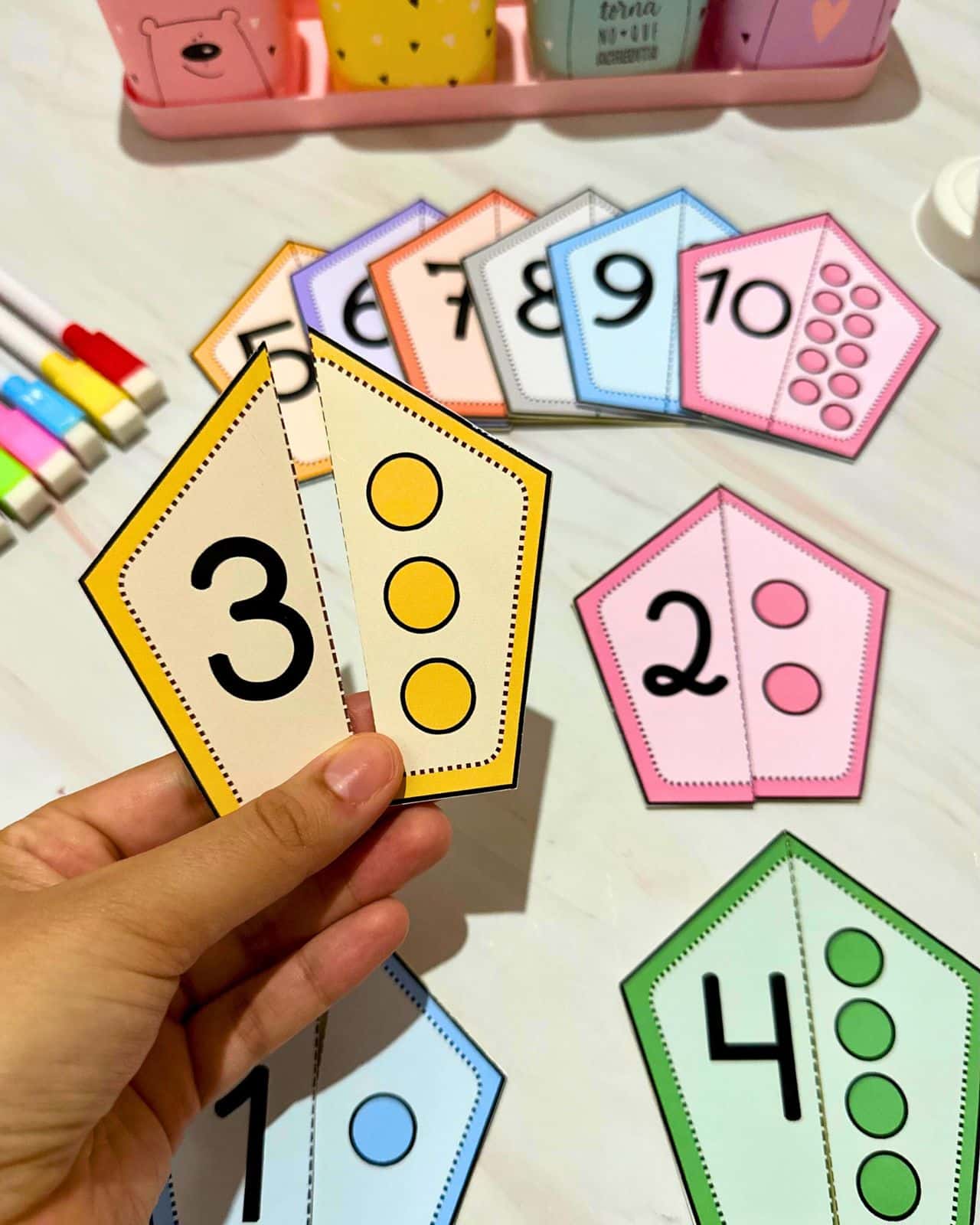 - Reforçar o conceito de quantidade e contagem: Ao emparelhar os numerais com suas quantidades correspondentes, as crianças praticam a contagem e reforçam o conceito de quantidade.