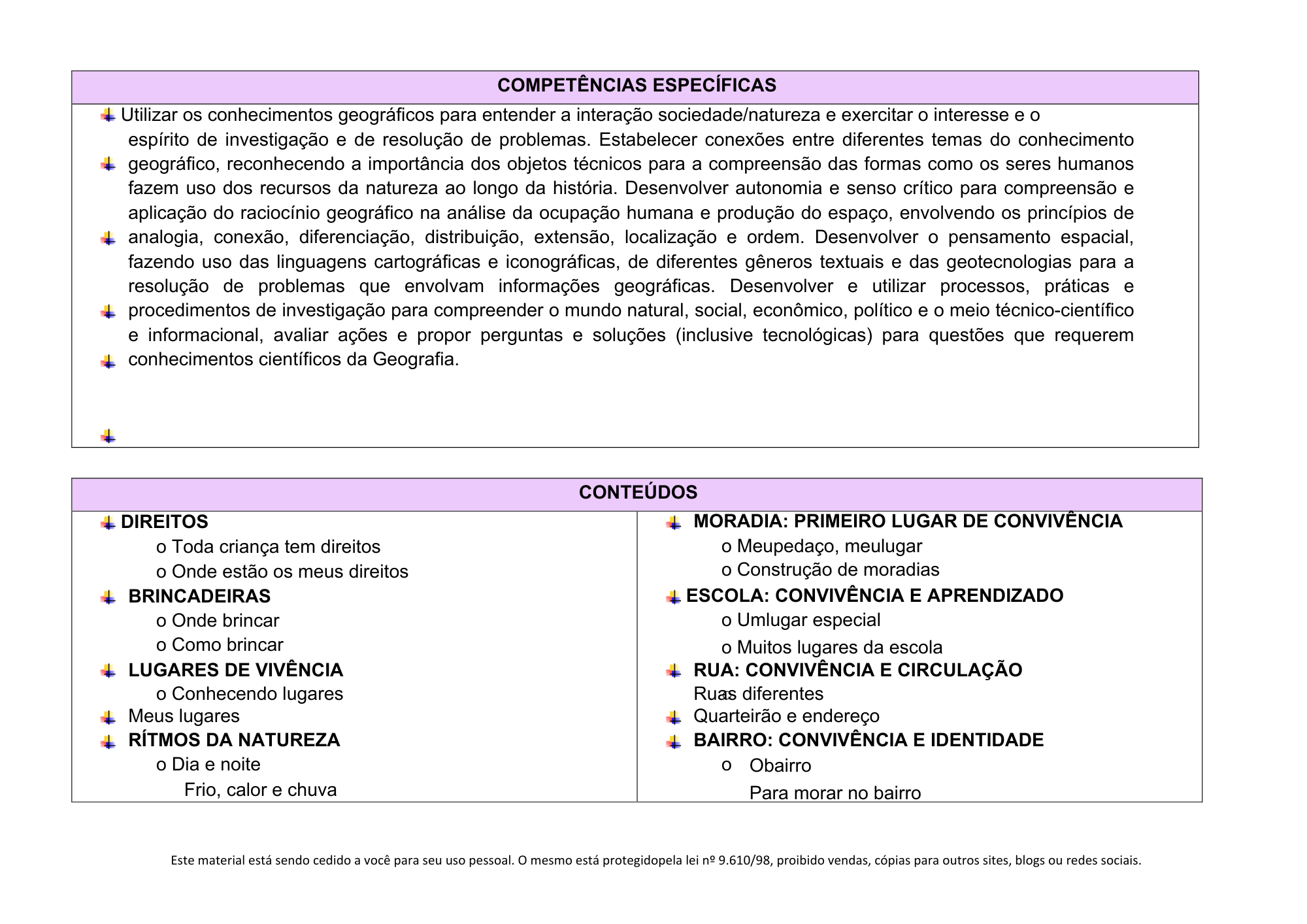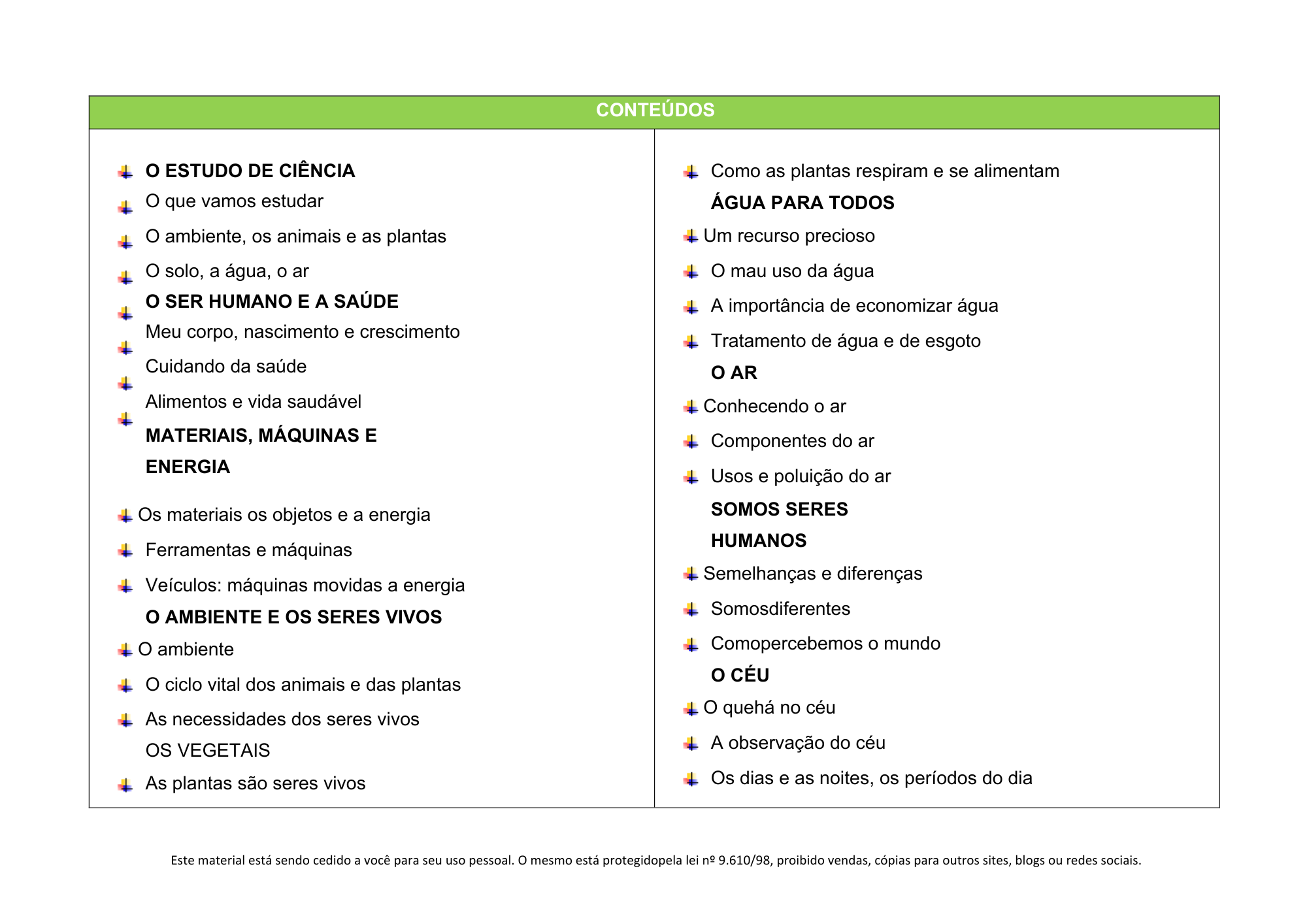 Conteúdos organizados por bimestre