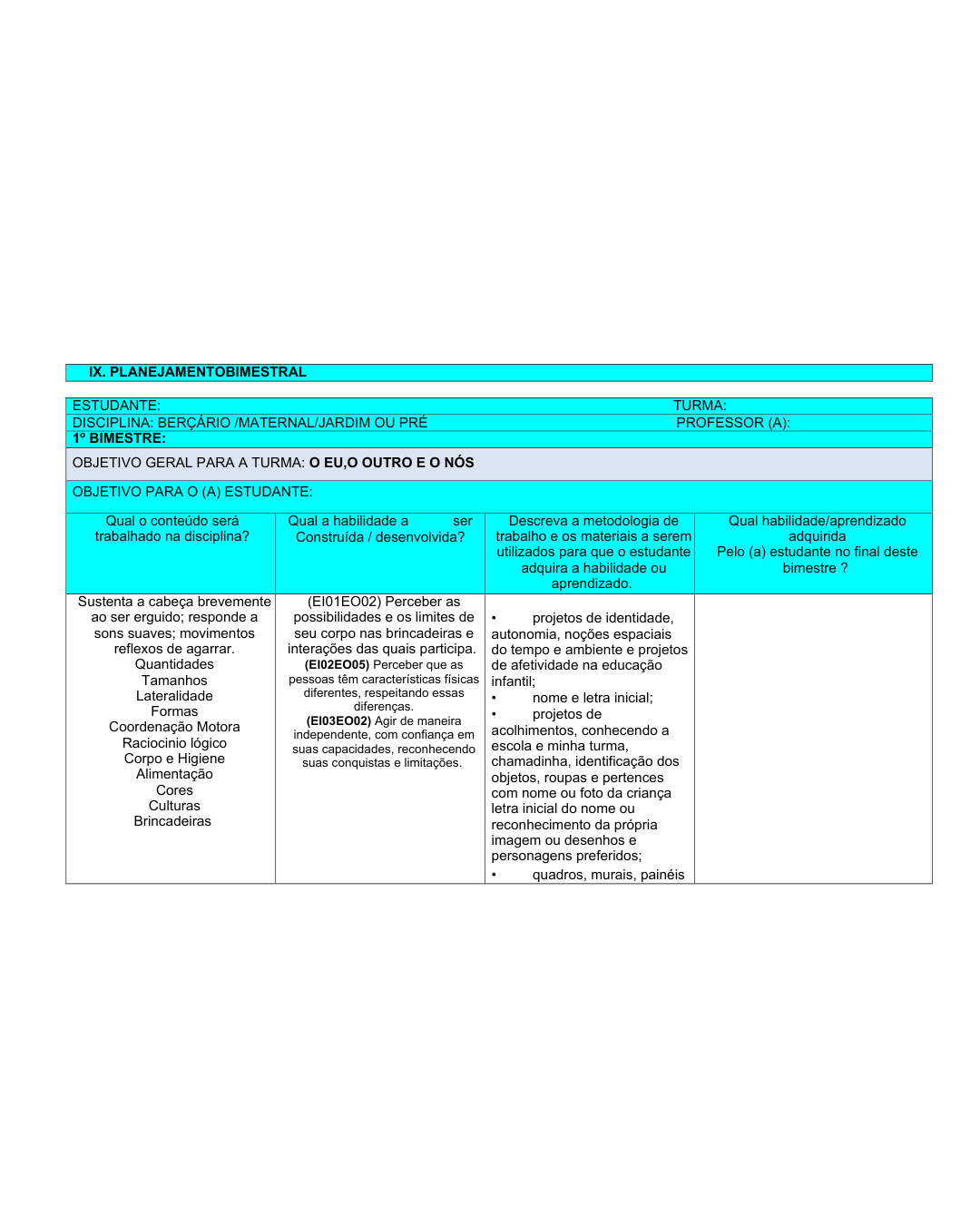 Planejamento anual do Berçário – 2026