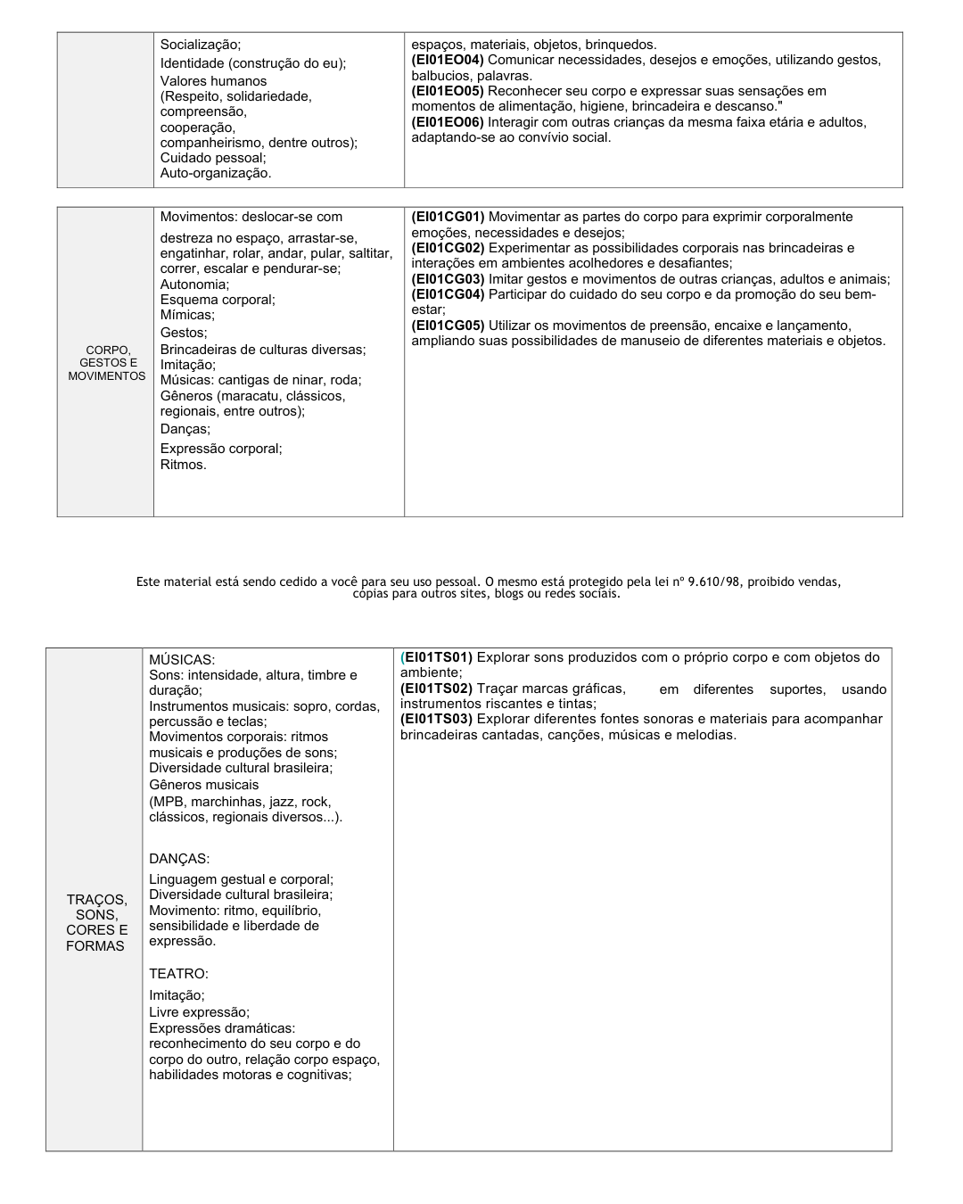 Campos de experiência da BNCC