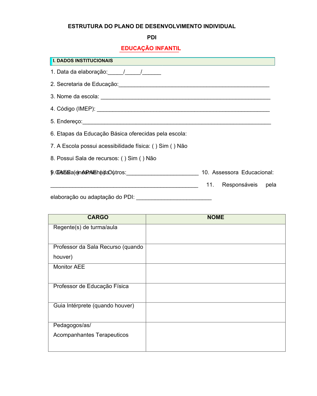 ✅ Modelo de PDI (Plano de Desenvolvimento Individual)