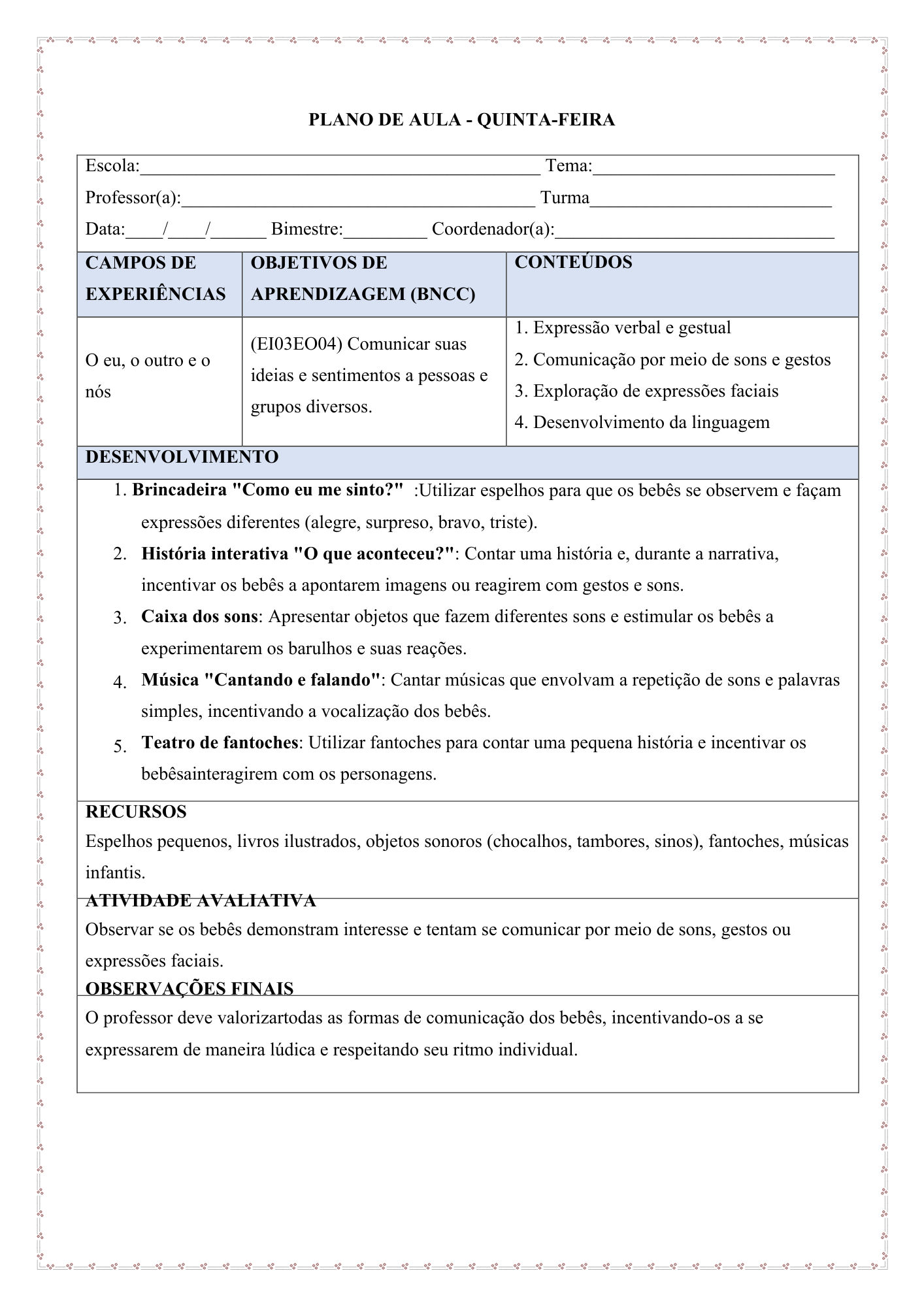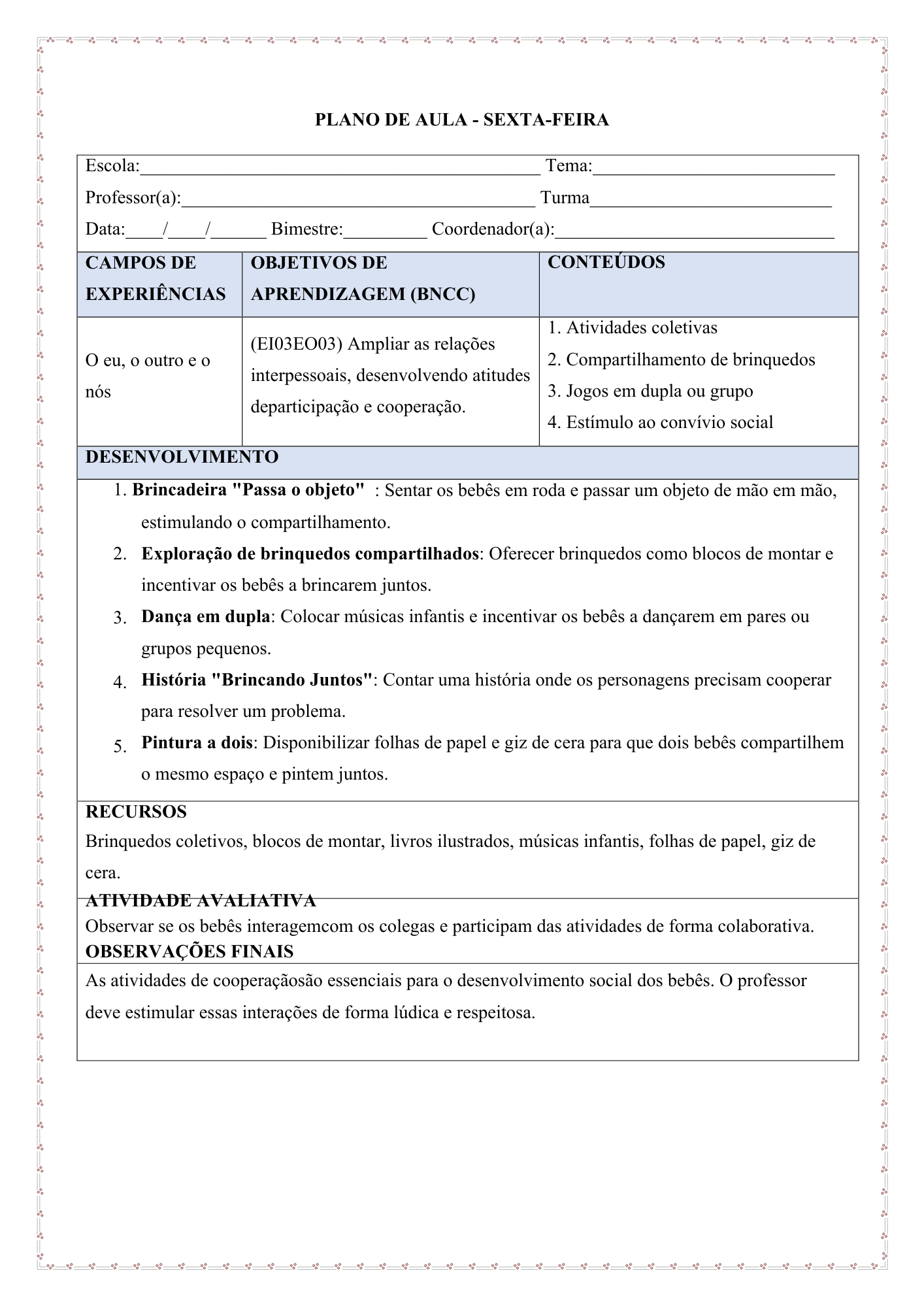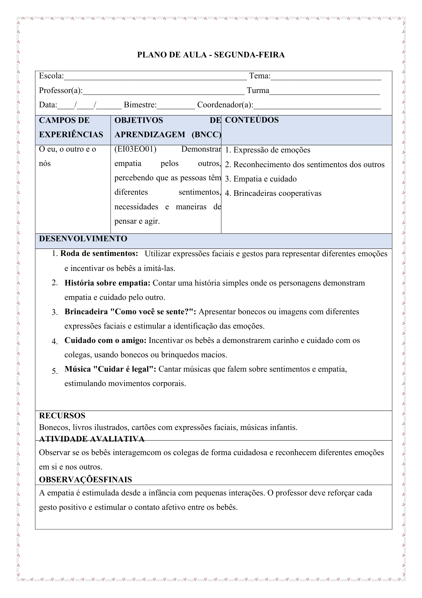 Pronto para imprimir ou editar conforme a realidade da turma