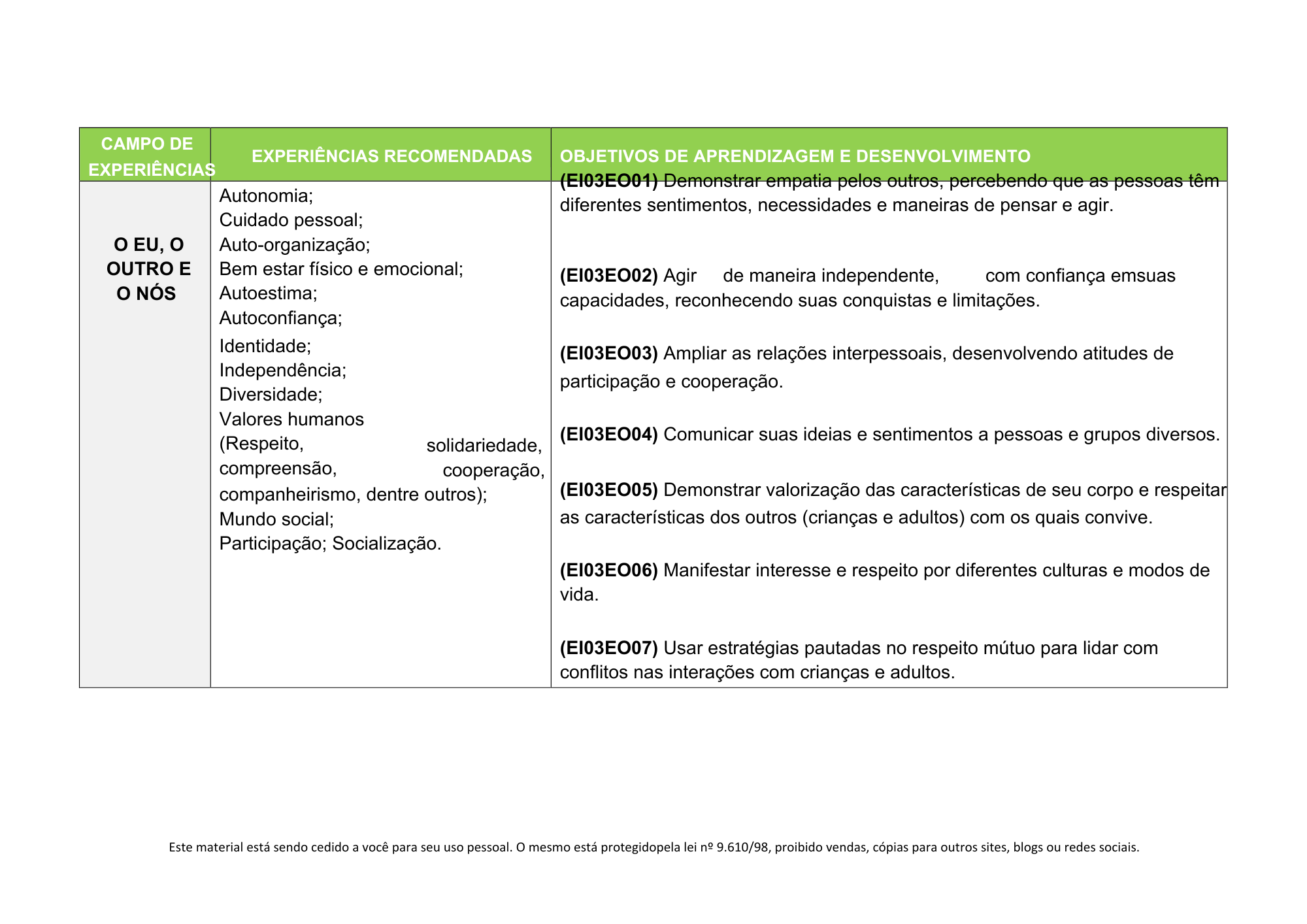 Campos de experiência da BNCC 2026 organizados