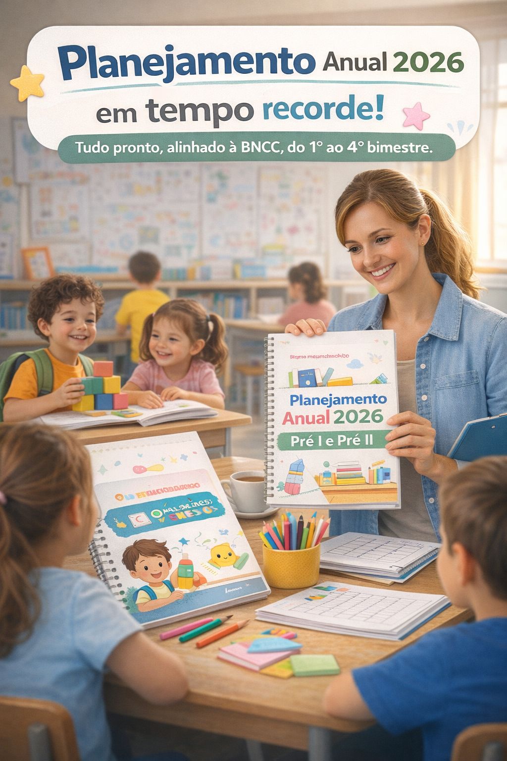 O Planejamento Anual 2026 para o Pré foi desenvolvido especialmente para professores da Educação Infantil (Pré I e Pré II) que desejam mais organização, segurança pedagógica e economia de tempo no planejamento das aulas, com tudo alinhado à BNCC 2026.