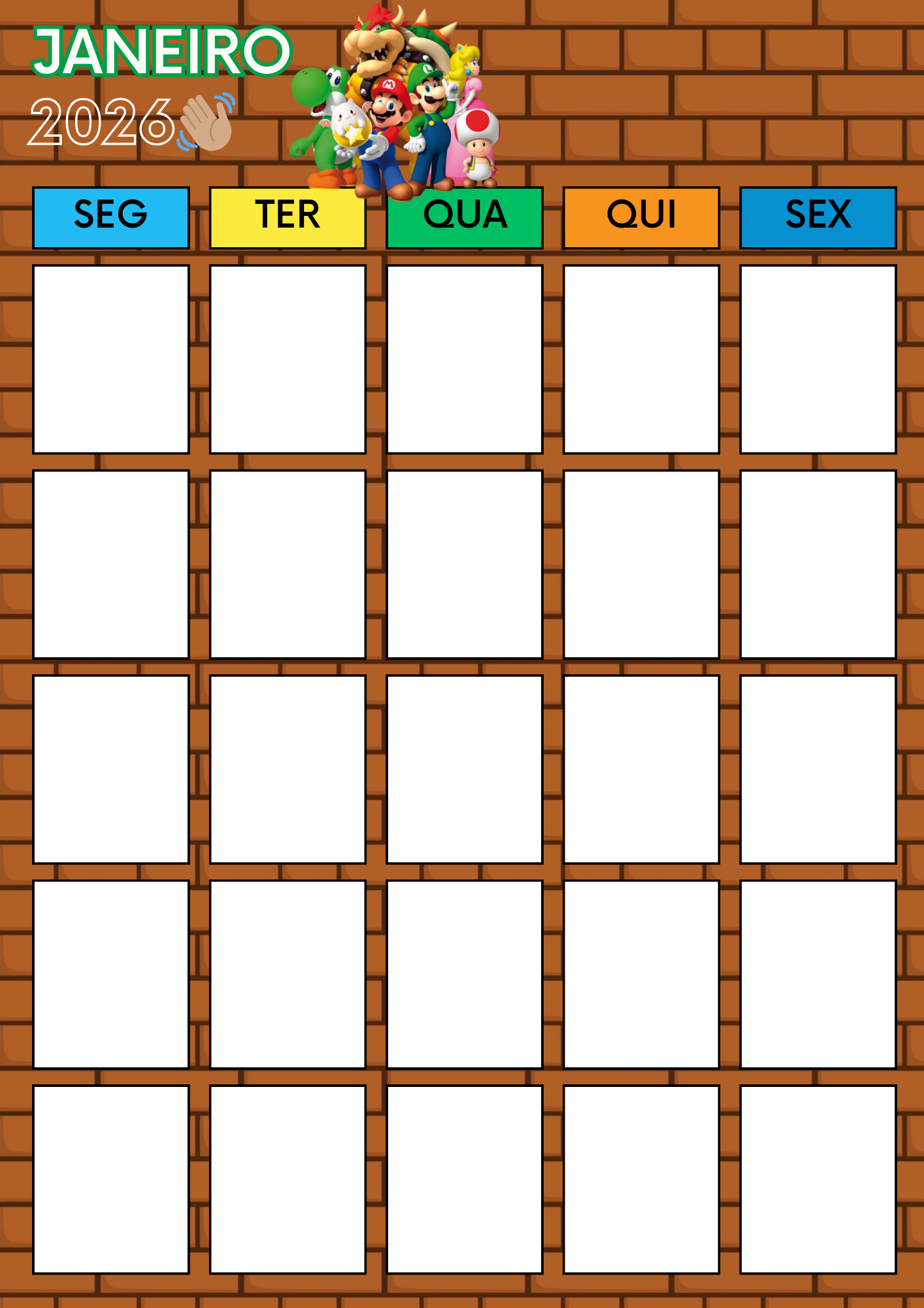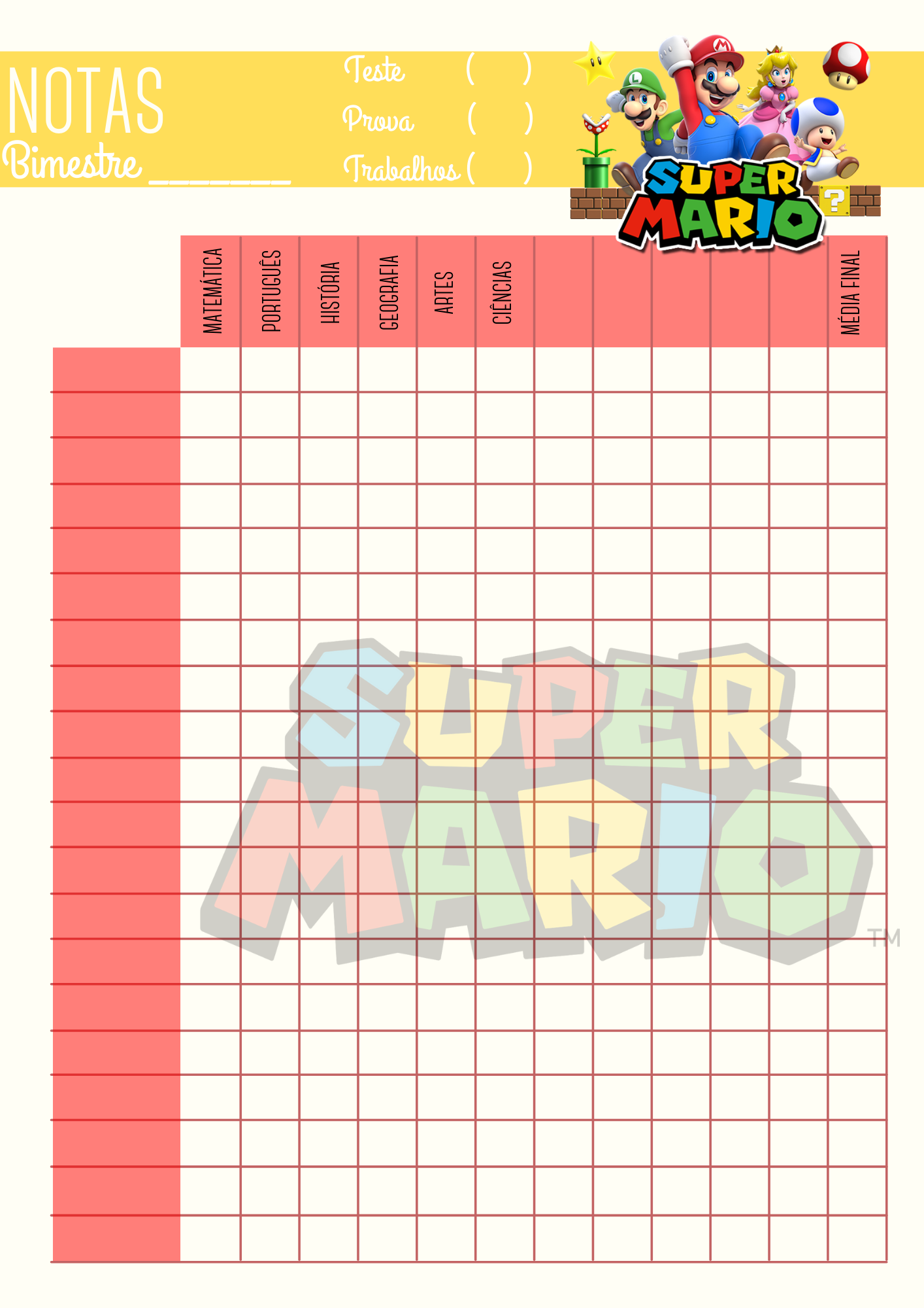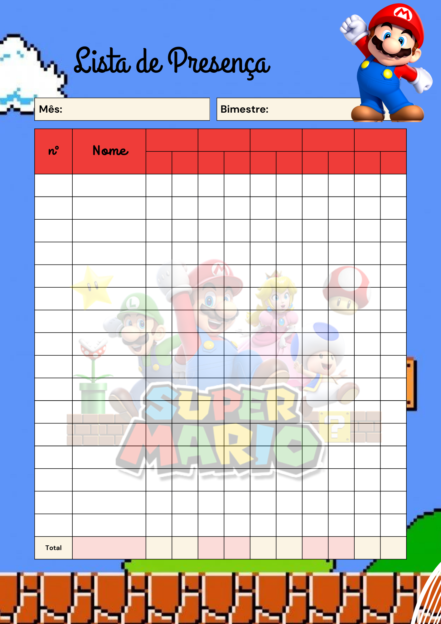 ✔ Visual lúdico, divertido e envolvente com tema Super Mario