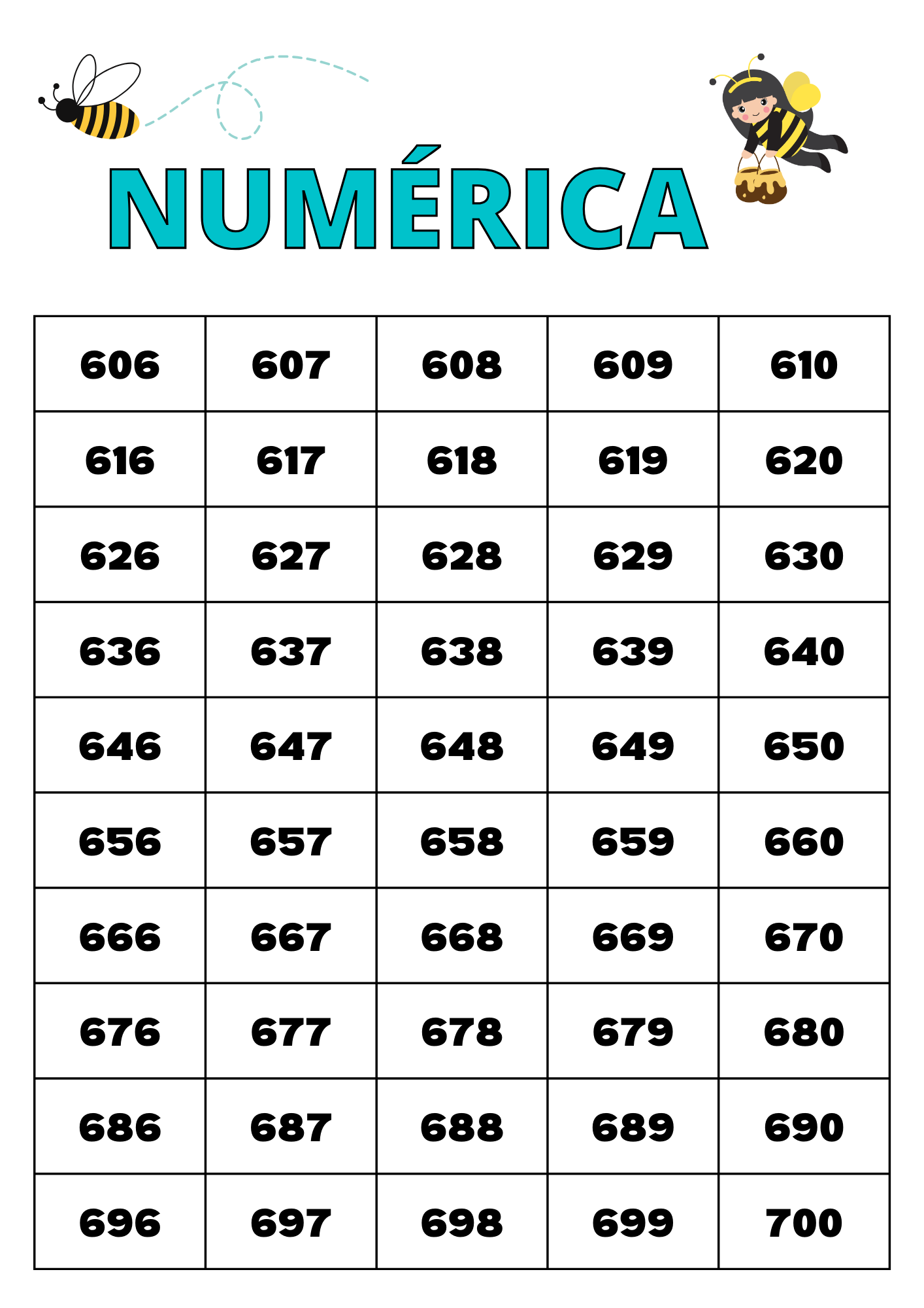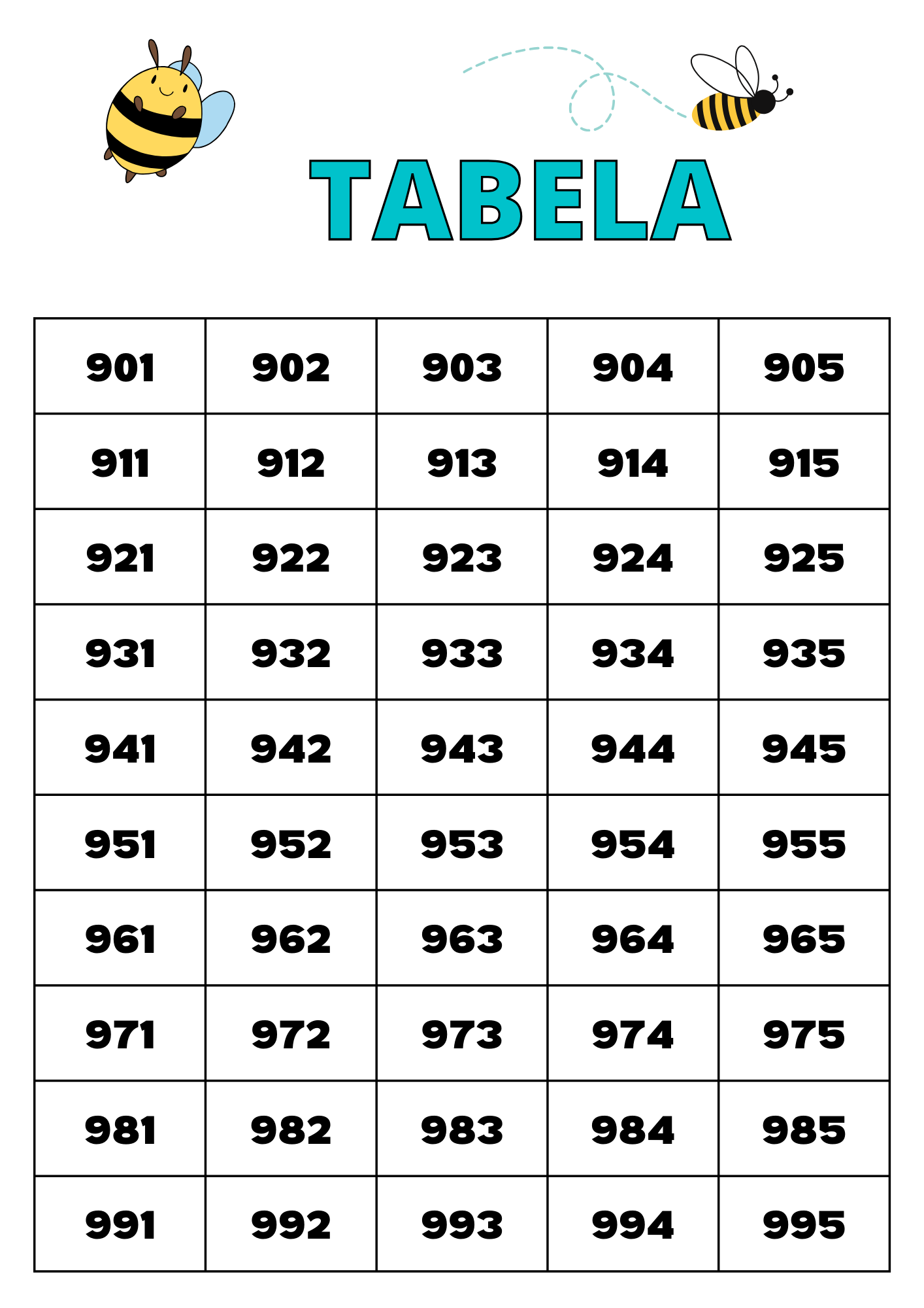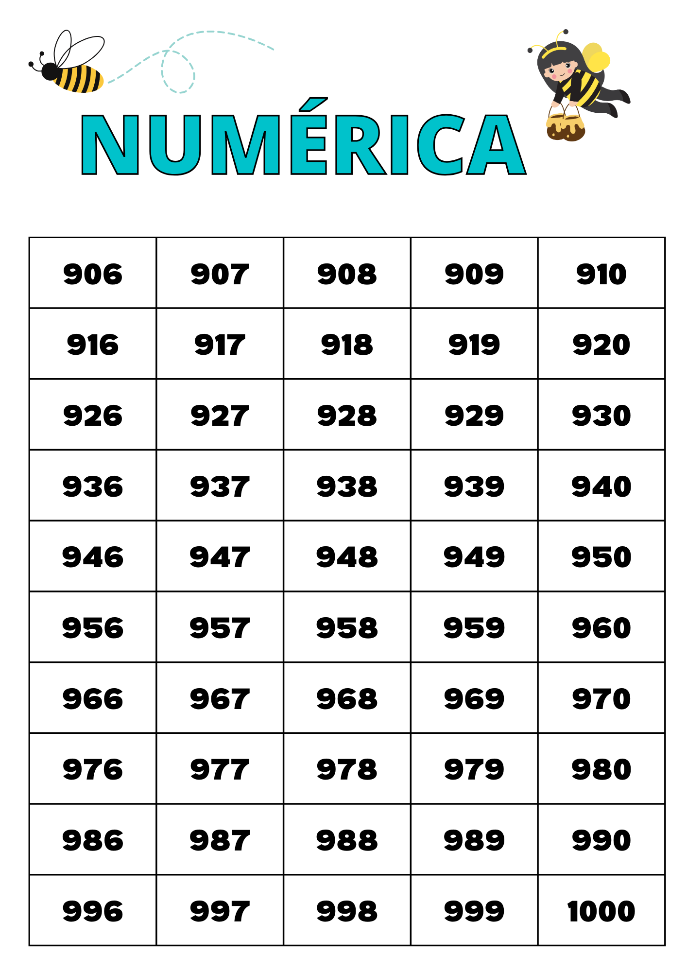 TABELA NUMÉRICA 1 A 1000