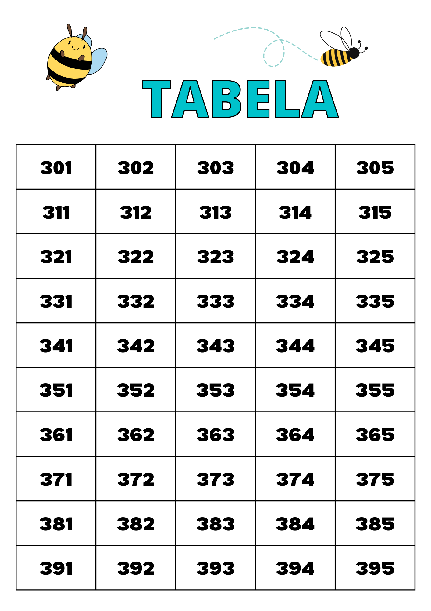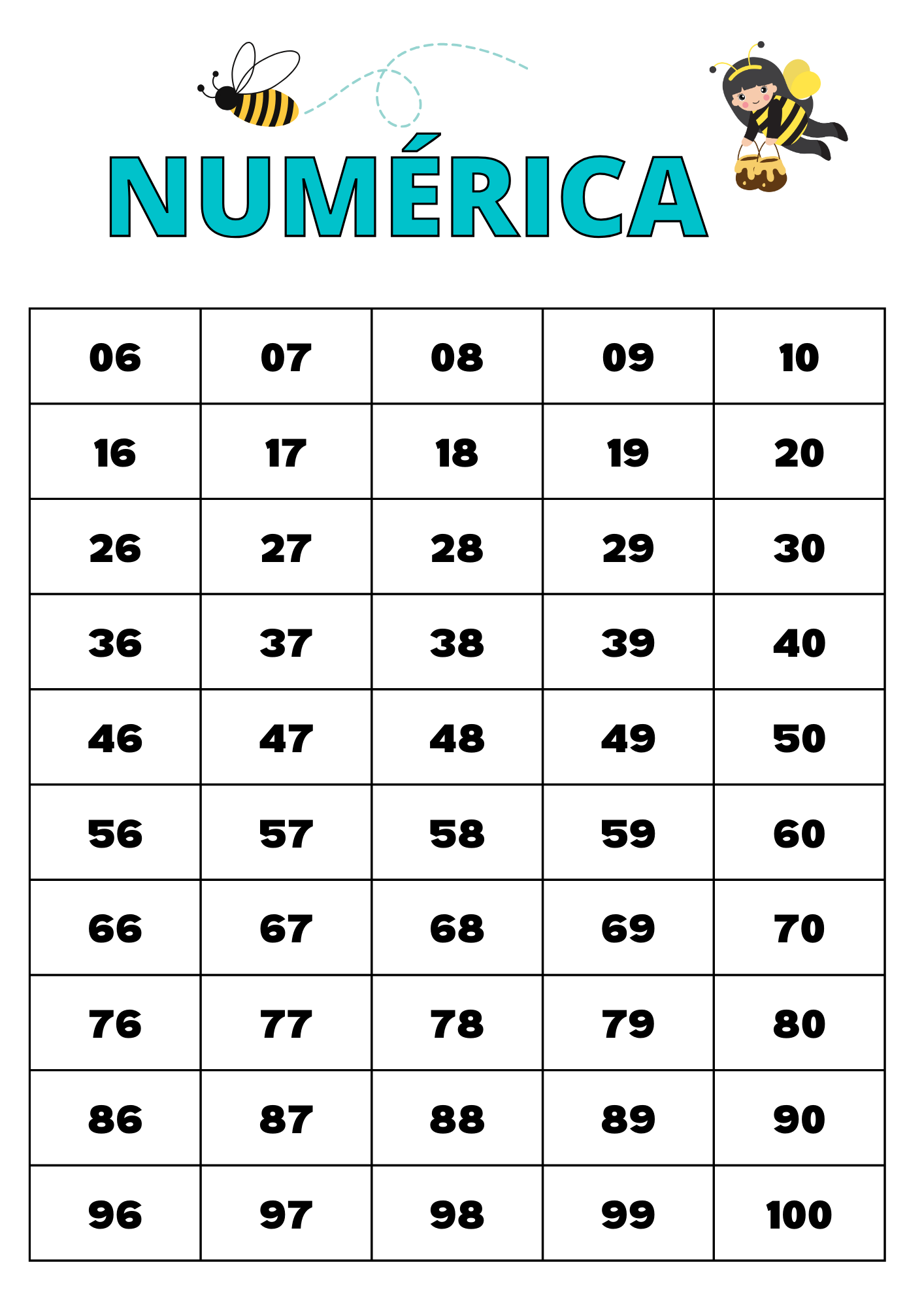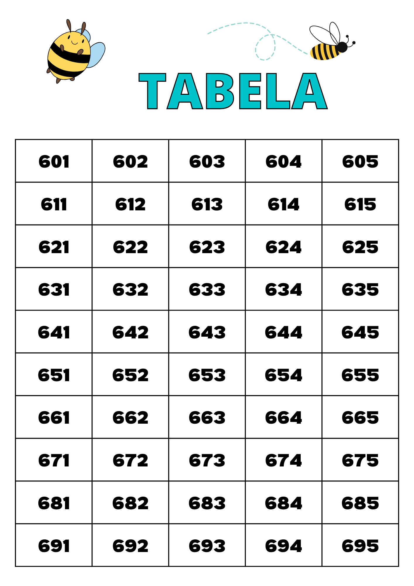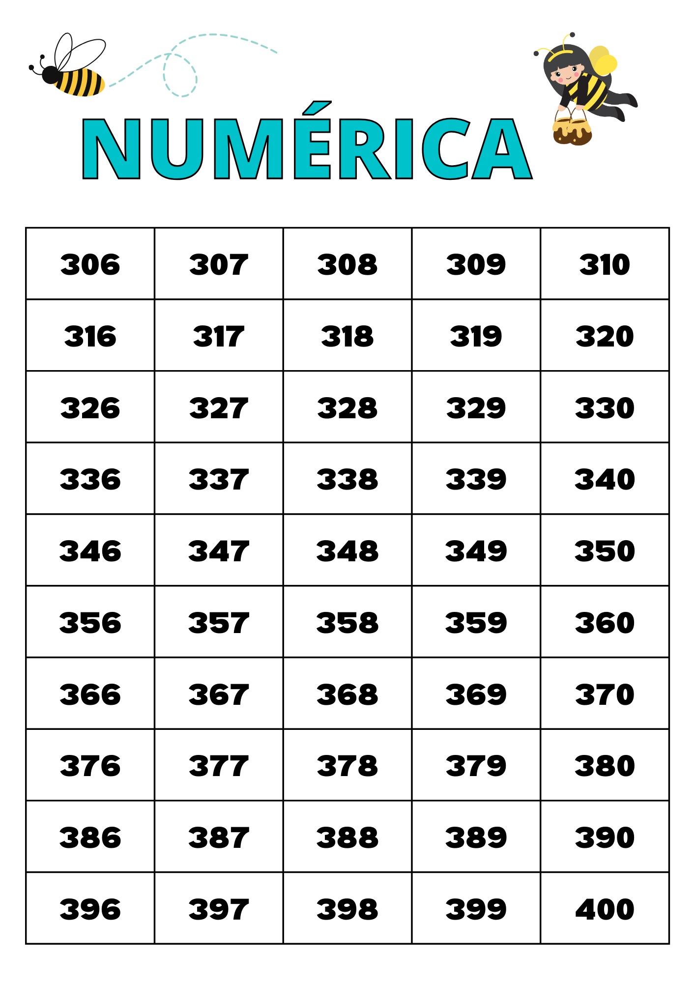 TABELA NUMÉRICA 1 A 1000